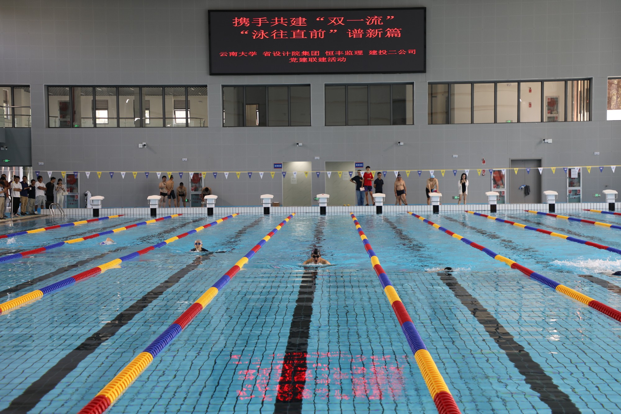 6月21日下午,公司与云南大学基建处、省设计院集团、恒丰监理在由公司承建的云南大学呈贡校区游泳馆开展“携手共建‘双一流’ ‘泳往直前’谱新篇”主题党建联建活动。云南省设计院集团公司党委副书记、副董事长、总经理李跃虹,省院集团工会主席、二建院党支部书记、院长湛华,二建院党支部副书记、副院长许丁,云南大学基建处处长余晖、副处长柳国清、副处长方云,云南恒丰建设咨询管理有限公司项目部总监邹荣,公司党委副书记、董事长陈定华,党委委员、副总经理晏迷出席活动。