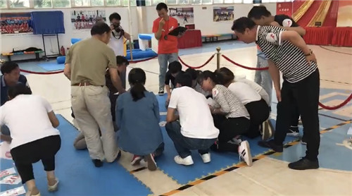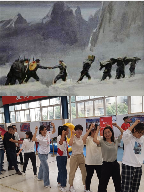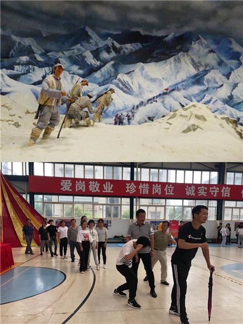 党课后,参会人员来到公司篮球馆参与主题党建活动。活动根据长征路线的重要地点和发生的重要事件,设置了“翻雪山”、“过草地”、“飞夺泸定桥”、“遵义会议”“四渡赤水”、“激战腊子口”、“三军会师”等七个游戏,参加活动的人员随机组建成“薪火相传”、“铮铮铁骨”、“众志成城”、“百炼成钢”、“勇往直前”五支队伍参与活动。