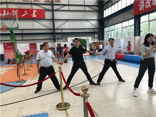 党课后,参会人员来到公司篮球馆参与主题党建活动。活动根据长征路线的重要地点和发生的重要事件,设置了“翻雪山”、“过草地”、“飞夺泸定桥”、“遵义会议”“四渡赤水”、“激战腊子口”、“三军会师”等七个游戏,参加活动的人员随机组建成“薪火相传”、“铮铮铁骨”、“众志成城”、“百炼成钢”、“勇往直前”五支队伍参与活动。
