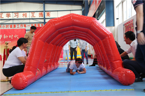▲游戏“飞夺泸定桥”(集体通过独木桥和障碍物)