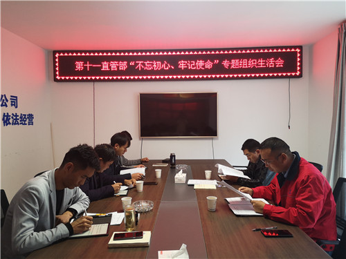 为强化党章意识,坚定政治信仰,深入学习领会党的十九大精神,深入贯彻“不忘初心、牢记使命”主题教育,10月15日下午2:00,第十一直管部党支部召开“不忘初心、牢记使命”专题组织生活会。