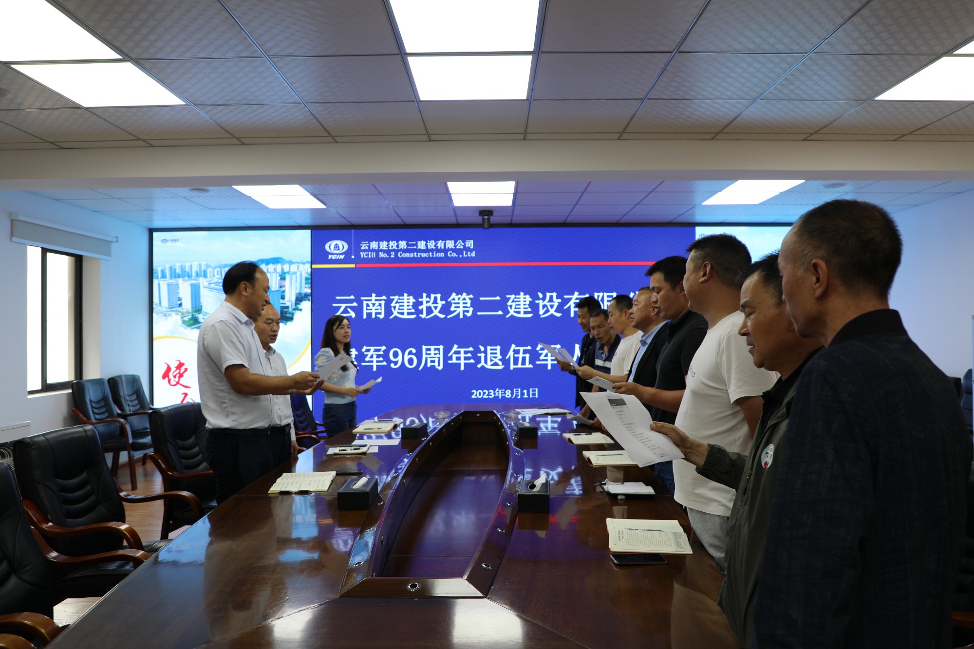 8月1日,公司党委在三楼会议室组织召开建军96周年退伍军人座谈会,公司党委副书记、副董事长、总经理董学友出席会议,公司党委工作部部长,保卫部经理以及退役军人职工代表参加会议。