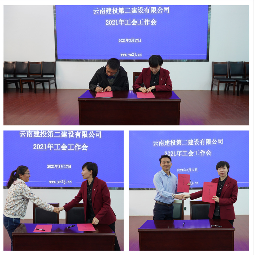 会后,胡云红与第九直管部、第十五直管部、建设产业化分公司三家单位工会签订了《2021年工会重点工作目标责任书》。