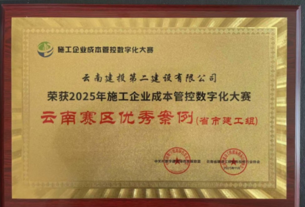 公司提交的“云南省曲靖市宣威至富源高速公路项目土建工程六分部项目案例”凭借在成本管控数字化领域的创新实践和显著成效,获评云南赛区优秀案例。