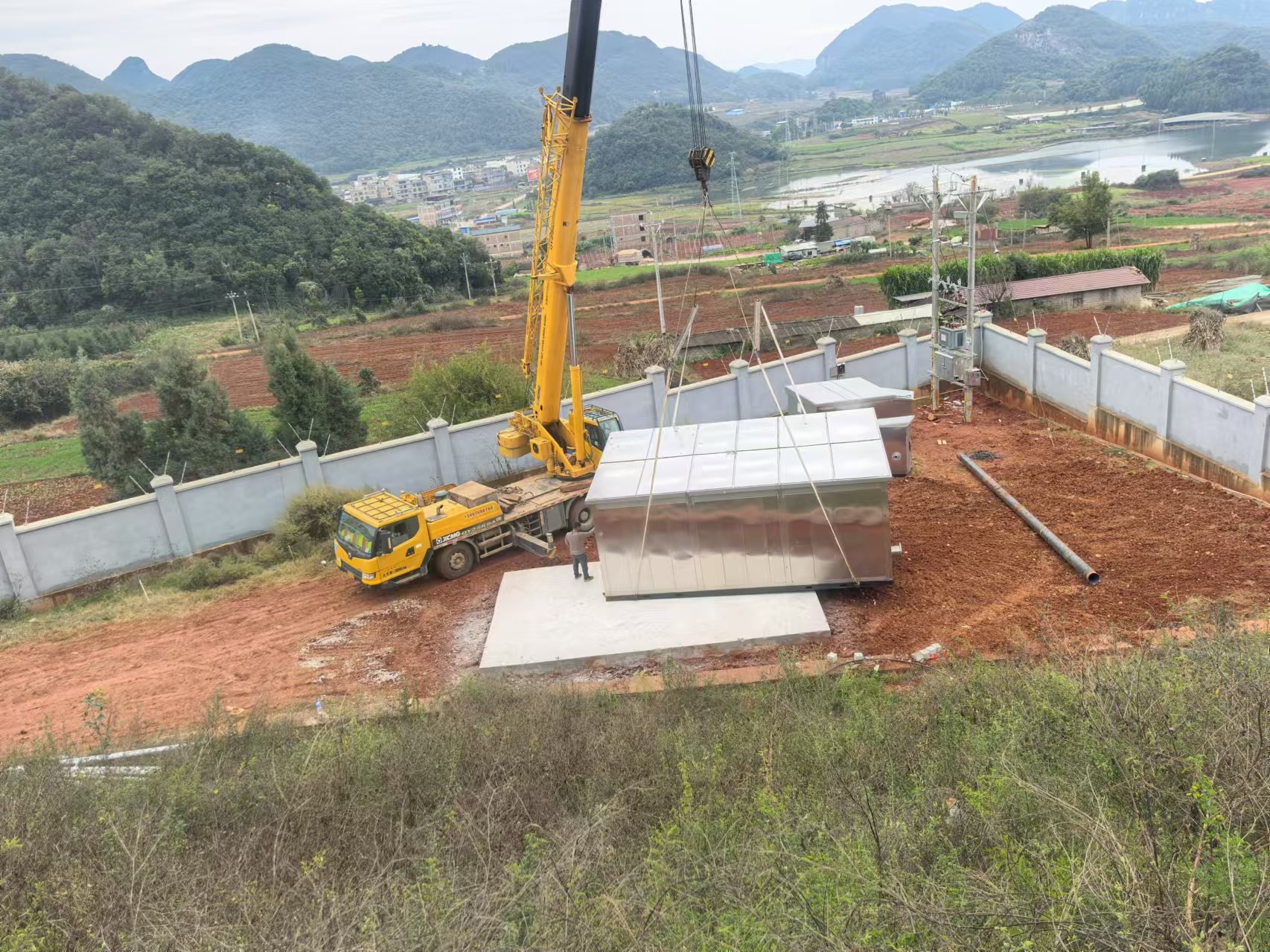 11月22日,随着首批螺旋焊管进场,双龙营片区高位水池施工正式开始。期间,项目管理人员克服一切困难,连续通宵4个夜晚,组织完成了征地协调、沟槽开挖、电力系统施工、管道泵基础施工、电杆架设和变压器安装、一体化泵安装、管道焊接等系列工作,顺利完成双龙营片区高位水池建设,帮助山心片区管网顺利通水。