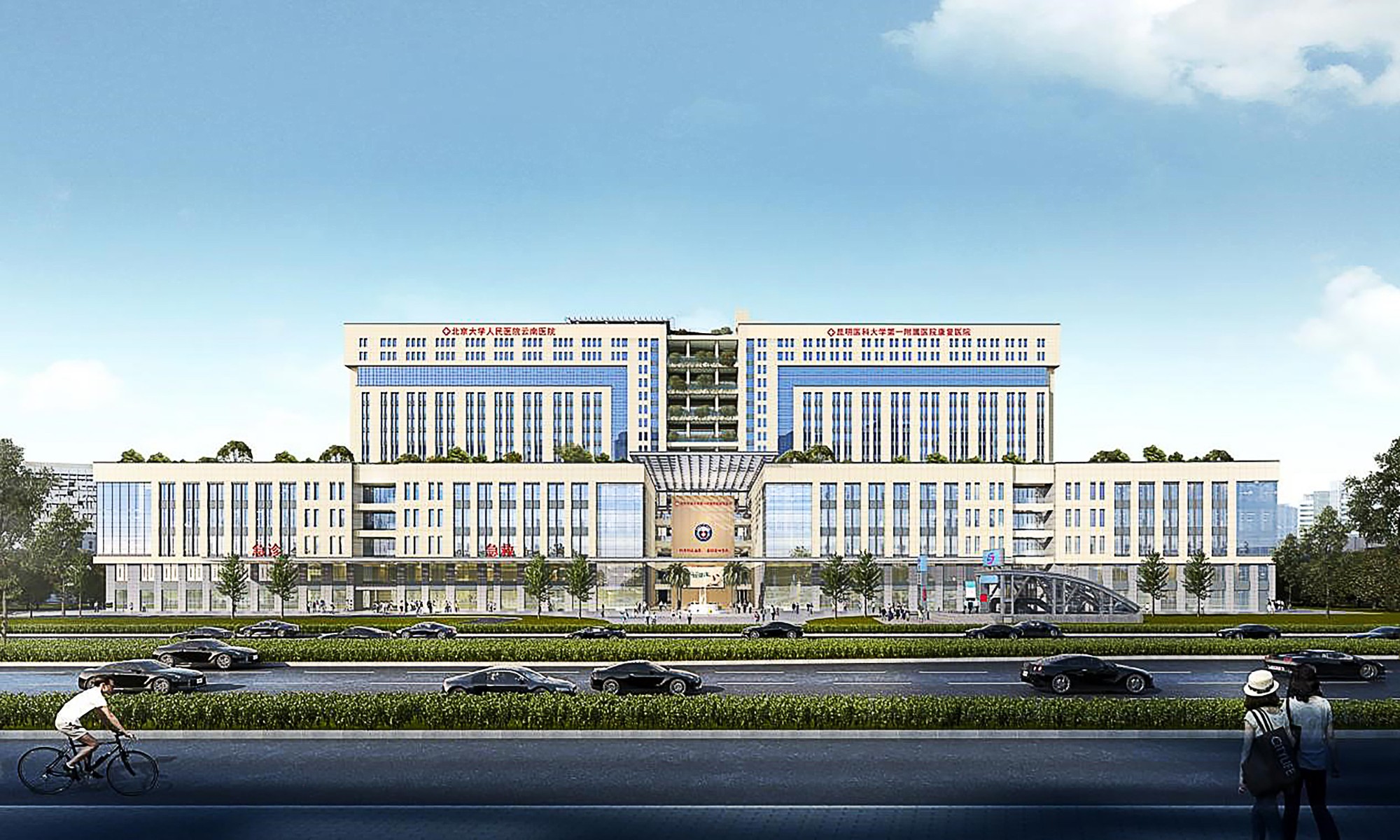 该项目位于云南省昆明市呈贡区春融东路与祥和街交叉处,规划建筑面积为225101.99㎡,设置床位1200床,其中地上建筑面积135300㎡,地下建筑(2F)面积90000㎡,公共建筑最大单体建筑面积45756.49㎡,最高高度为74.40m。项目目前部分裙楼已封顶,1号住院楼主2022年11月13日封顶,2号住院楼主体于12月11日主体封顶。