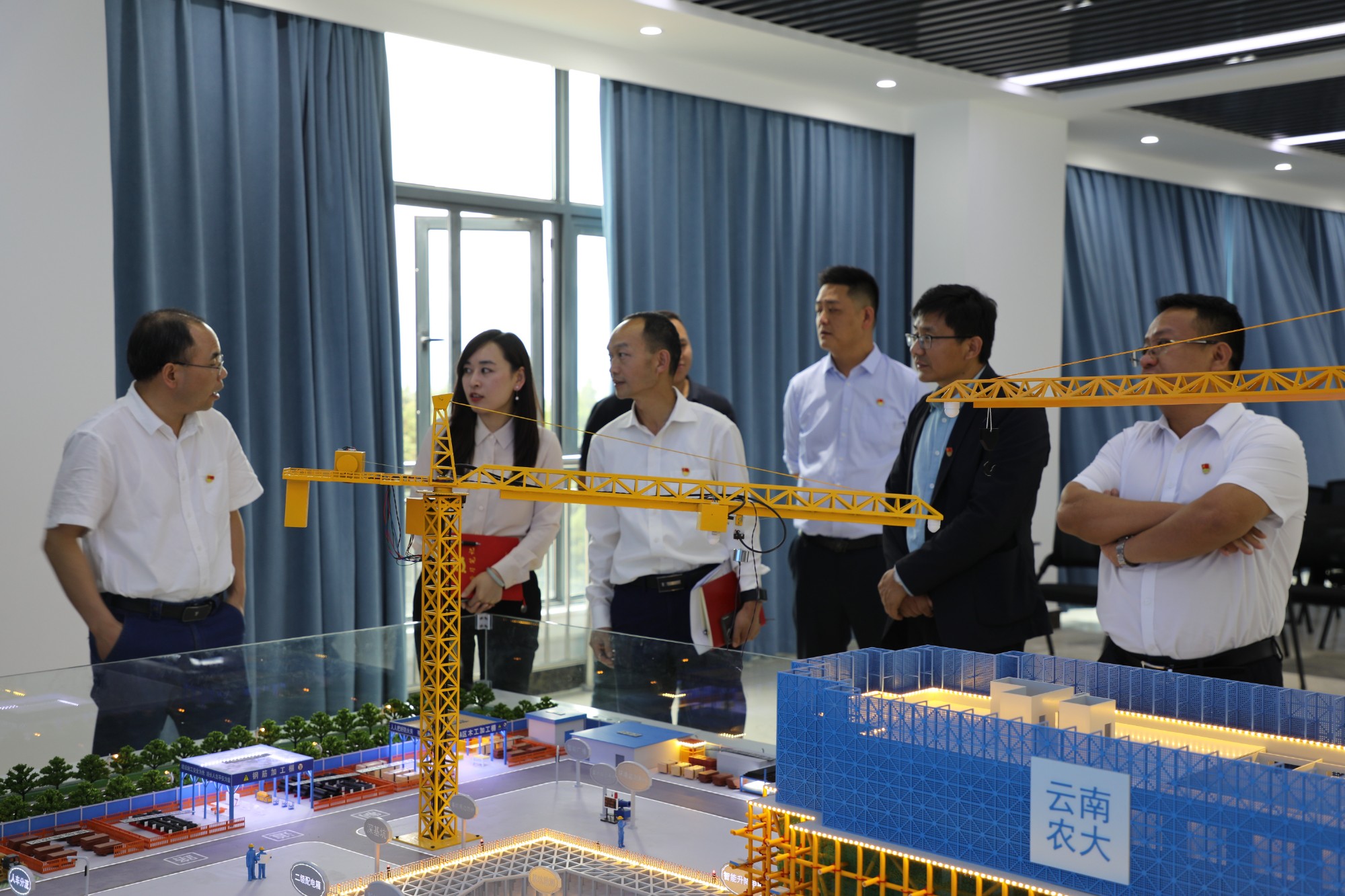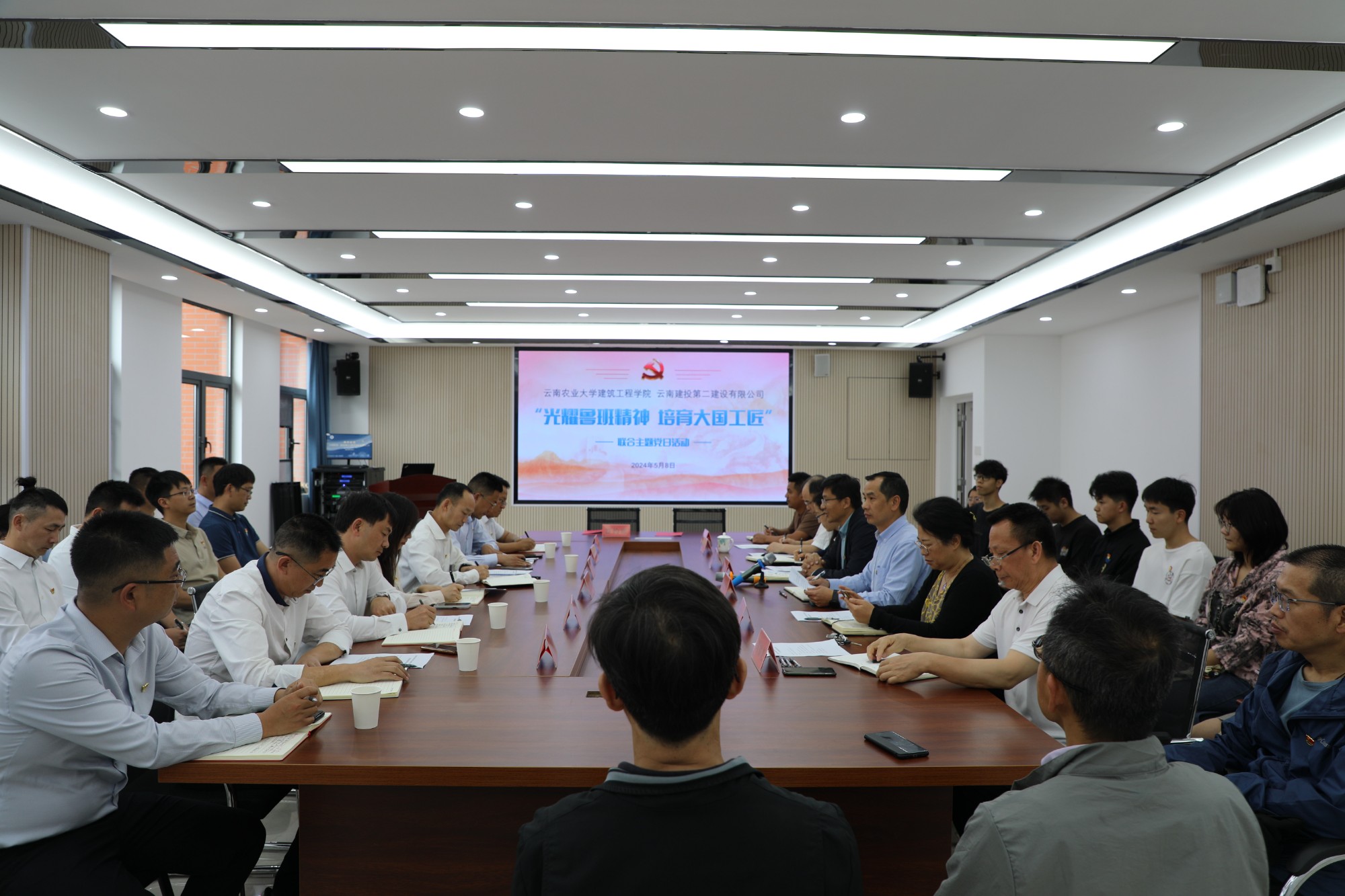 会议组织开展了“光耀鲁班精神 培育大国工匠”主题党日活动,与会人员用铿锵有力的声音合唱了《中华人民共和国国歌》《没有共产党就没有新中国》,并共同参观了云南农业大学建筑工程学院智能建造一体化综合实训中心。