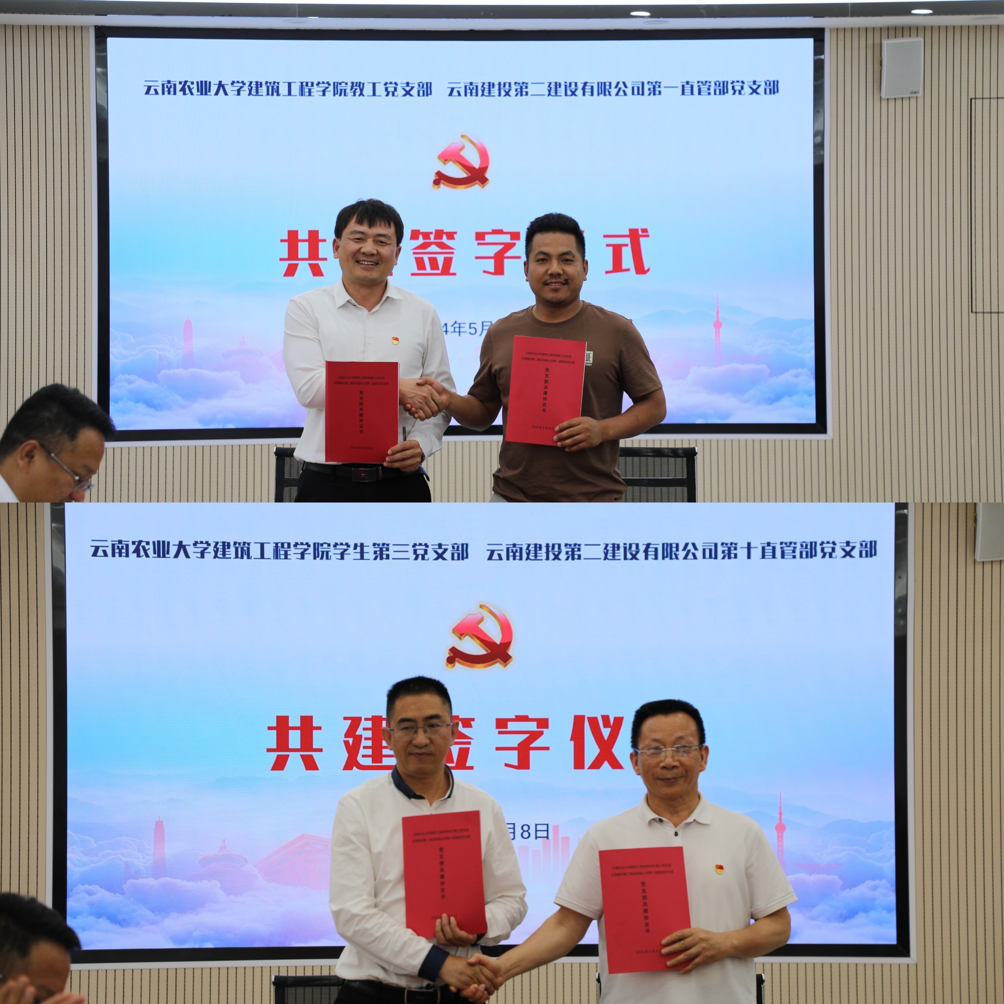 5月8日下午,公司与云南农业大学建筑工程学院在建筑工程学院五楼会议室举行院企党支部共建签字仪式。云南农业大学建筑工程学院党委书记王国贤、党委副书记陆志炳,公司党委书记、副董事长董学友出席签字仪式。云南农业大学建筑工程学院相关领导,公司党委工作部负责人,第一直管部、第十直管部党政负责人参加仪式。