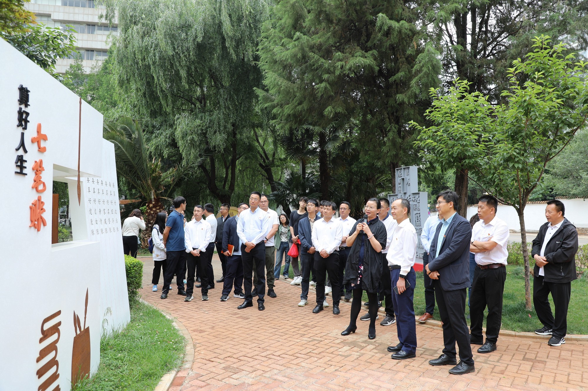 在云南农业大学纪委副书记、纪委办主任杨锐英的带领下,与会人员共同参观了云南农业大学廉洁文化园,仔细聆听了关于“廉”字的演变历程、六廉以及廉吏背后的故事、少数民族廉洁文化、耕读文化的讲解。