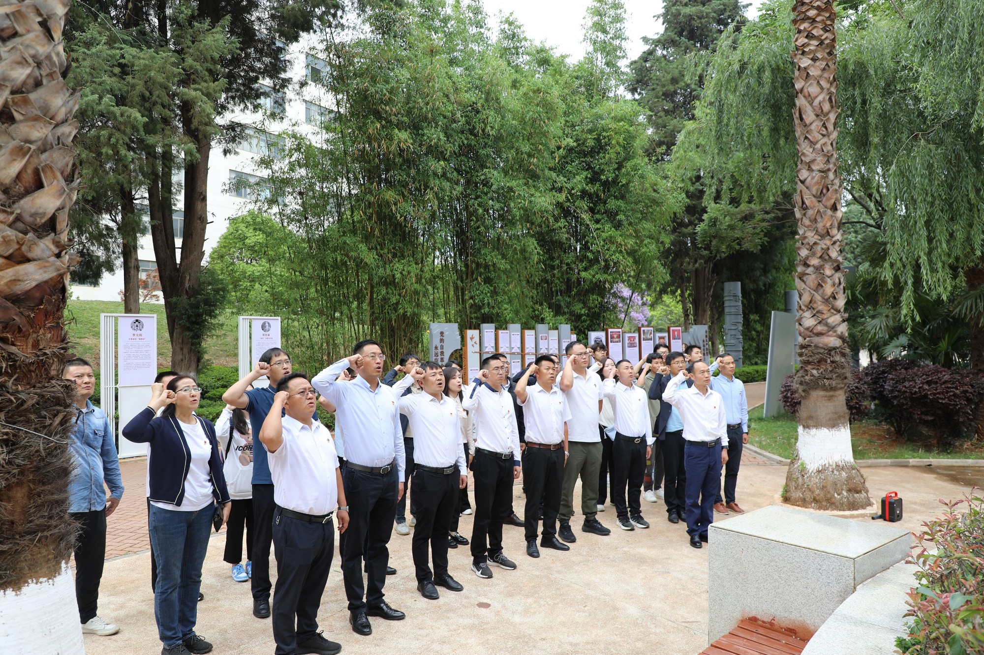 参观结束后,与会人员在党旗面前庄重举起右拳,共同重温入党誓词,回顾初心使命。