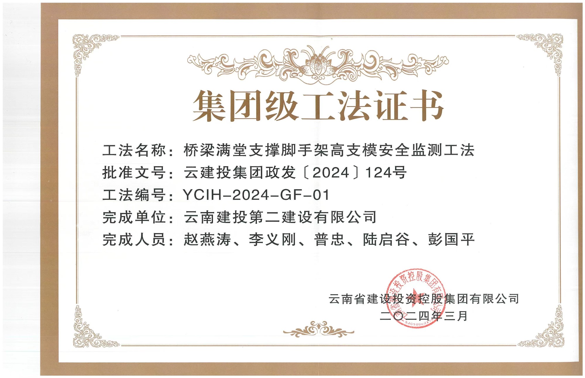 “桥梁满堂支撑脚手架高支模安全监测工法”主要原理是系统通过自动采集、信息传感、多设备组网、云平台等技术集成了变形测量、超限报警的新型监测设备,实现高支模监测数据实时采集、实时传输、实时计算、科学预警、智能报警、协同管理等功能。该工法在云南昭通鲁甸环城公路土建二分部项目、元曼高速(玉溪段)一分部项目、峨石红高速(玉溪段)三分部项目工程中得到推广应用,实施效果良好,赢得建设、设计、监理各方的广泛好评。