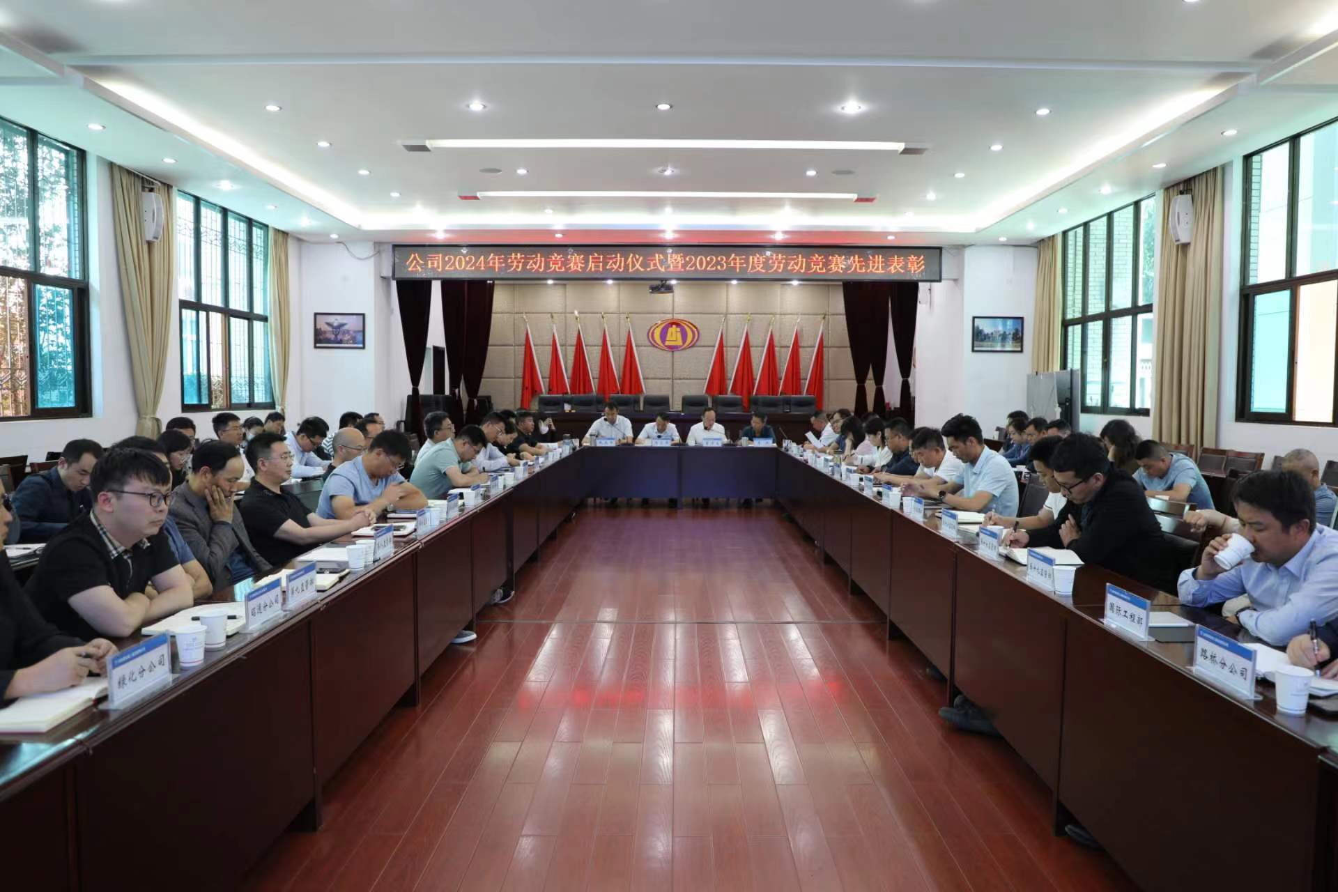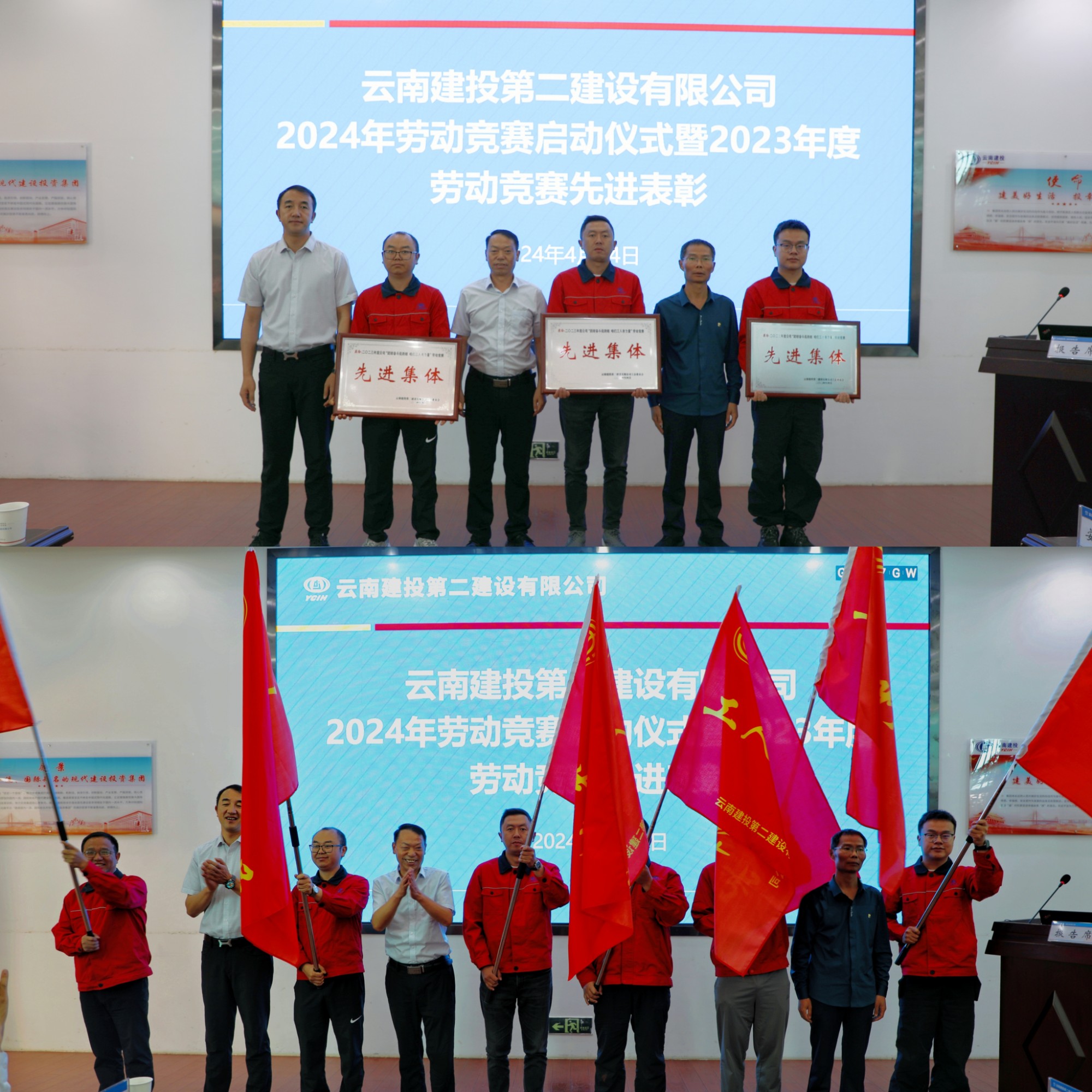 会议组织开展了公司2024年“抢抓黄金期 奋战100天”劳动竞赛启动仪式。董学友宣读了公司2024年“抢抓黄金期 奋战100天”劳动竞赛实施方案并宣布劳动竞赛正式启动。李斌宣读了《云南建投第二建设有限公司关于表彰2023年度劳动竞赛先进集体、先进个人的决定》。公司领导为先进单位颁发奖牌,并对部分参赛单位进行了劳动竞赛授旗。