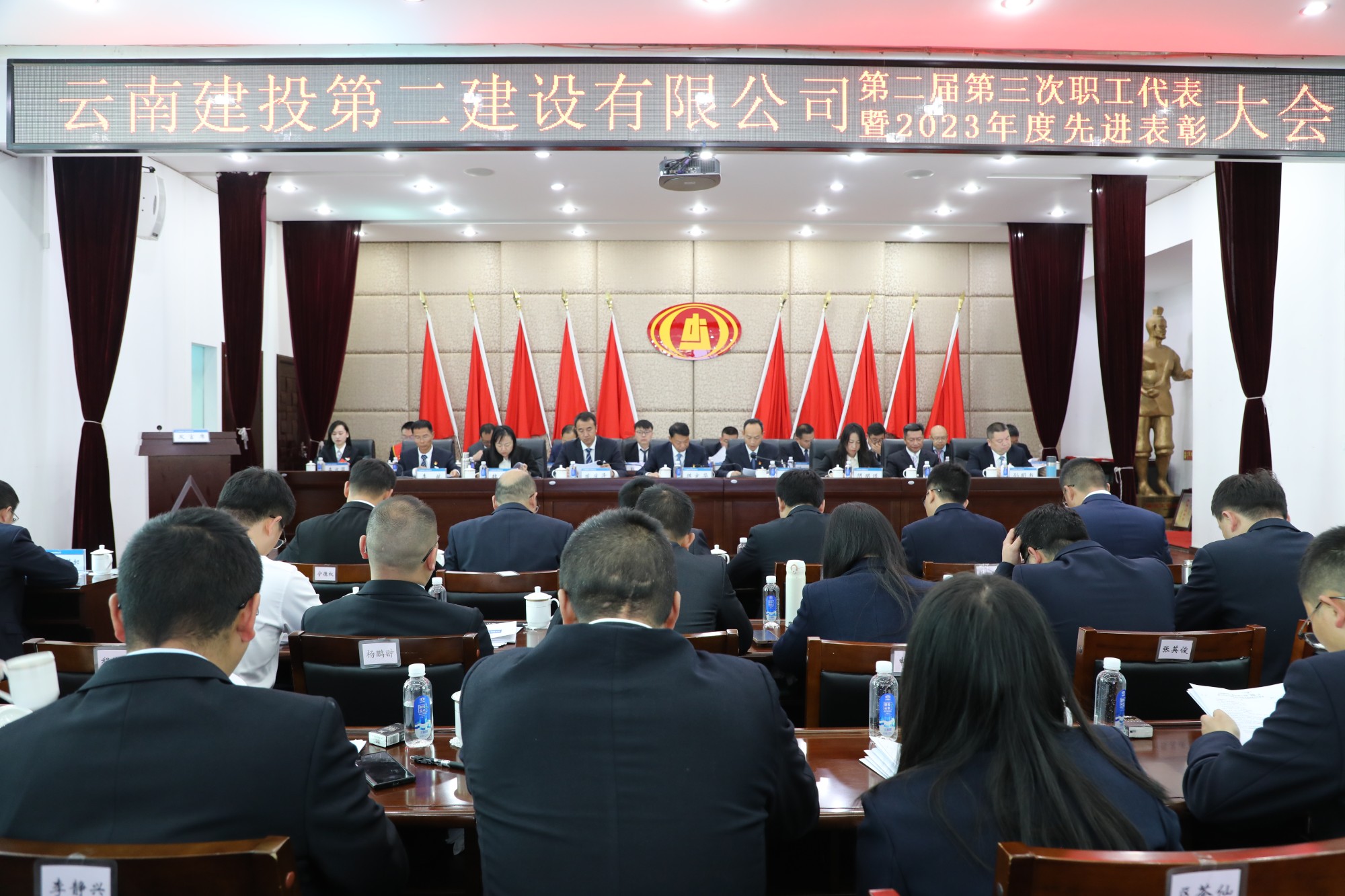 祥龙迎春,华章日新。2月26日,公司第二届第三次职工代表大会暨2023年度先进表彰会在一楼会议室胜利召开,来自各基层单位各个岗位的138名职工代表齐聚一堂,全面学习集团二届一次职代会精神,认真履行代表职责,为公司发展建言献策。会议特邀退休老领导4人、青年骨干19人列席。