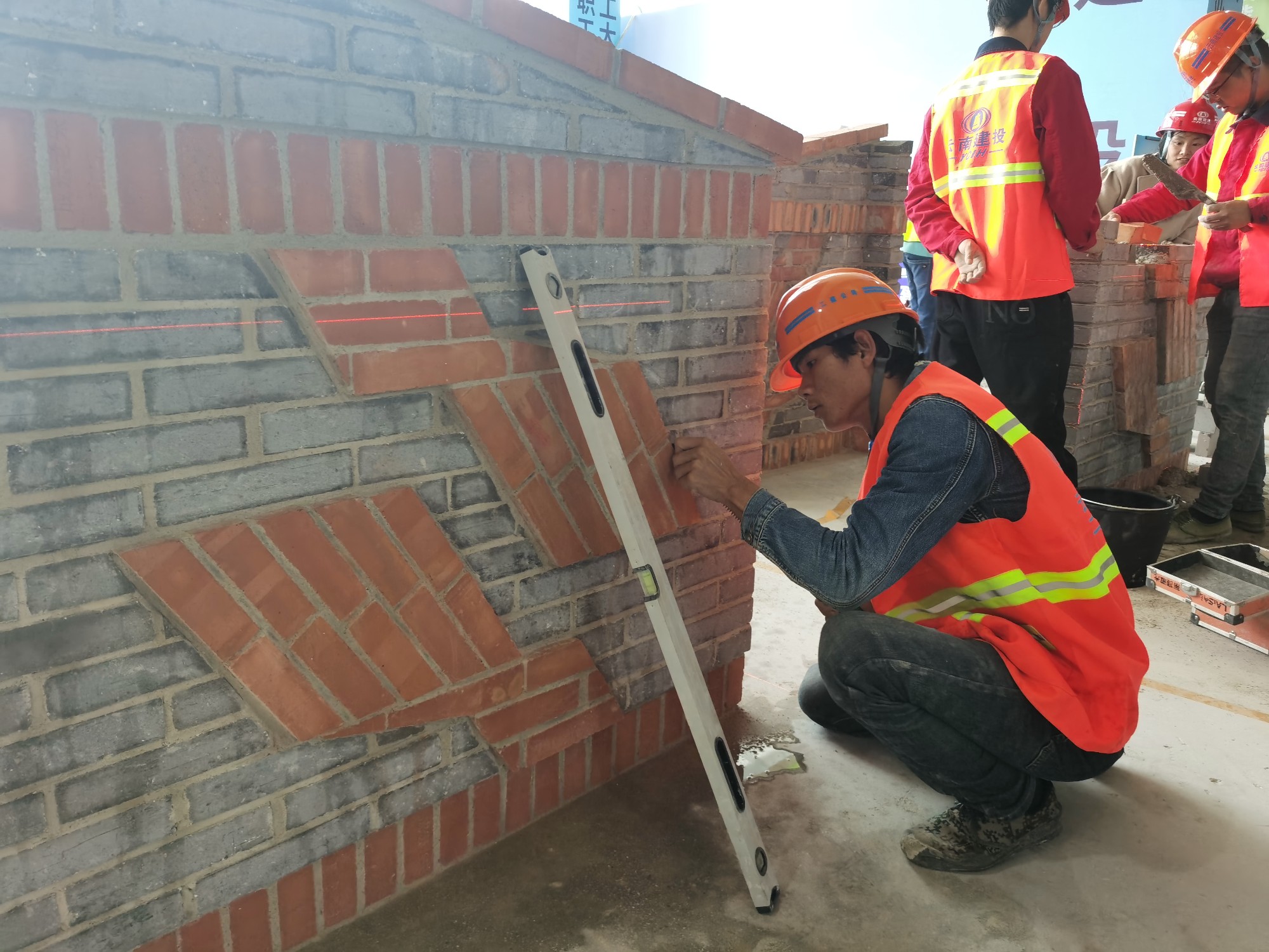 本次竞赛以“匠心创造 技能兴滇”为主题,设置理论考试和技能实操两部分,其中,理论考试以闭卷机考形式进行,主要考核参赛选手对砌筑基础知识的掌握、安全操作规范及劳动权益保护等内容。实操以“手牵手”民族特色图案为试题,主要考核选手实际砌筑操作技能水平。