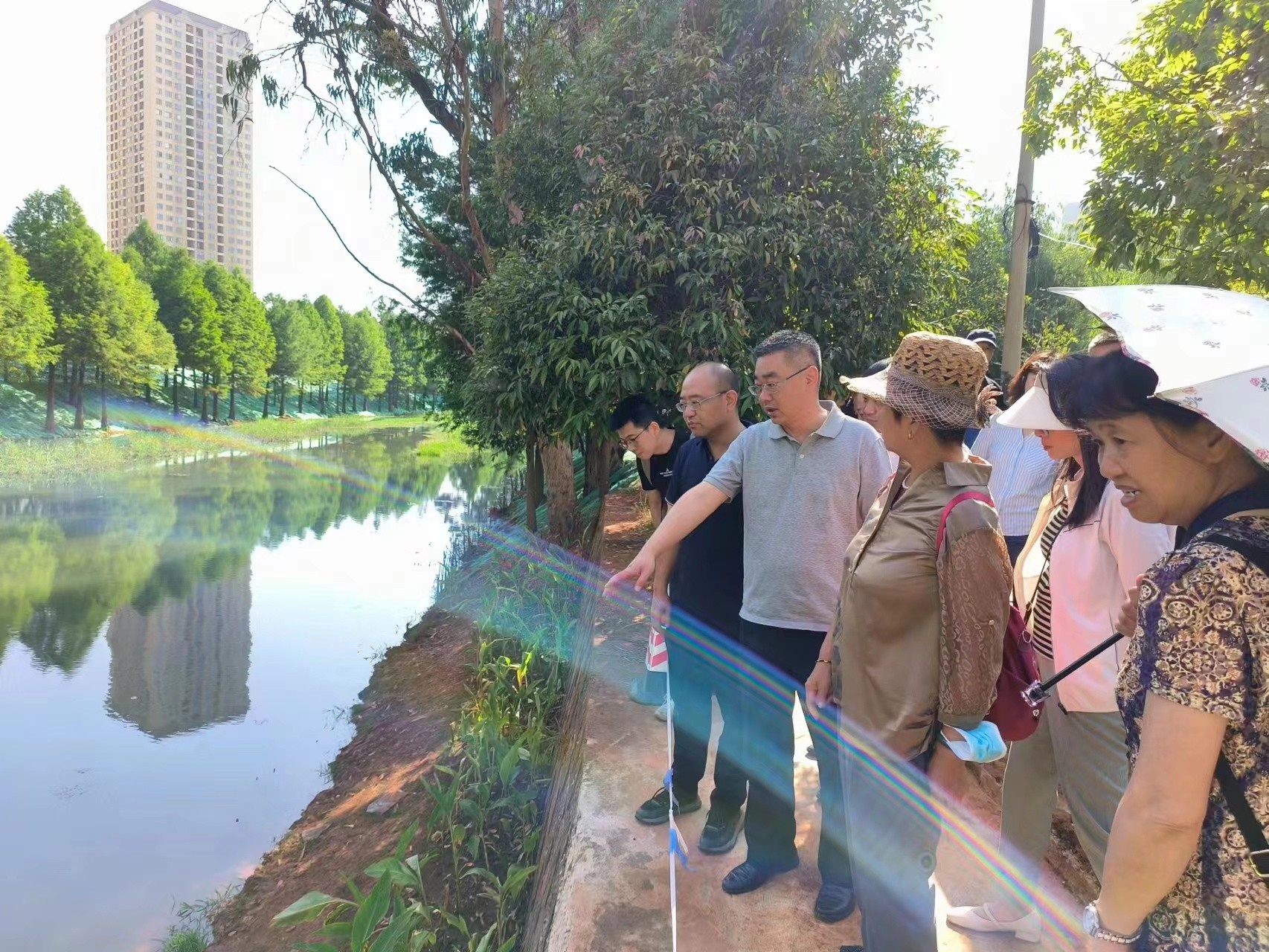 5月30日上午,盘龙区委书记沃磊带领盘龙区水务局长一行到第五直管部承建的盘龙江滨河海绵绿廊及生态健身带建设项目进行调研,项目经理陪同。