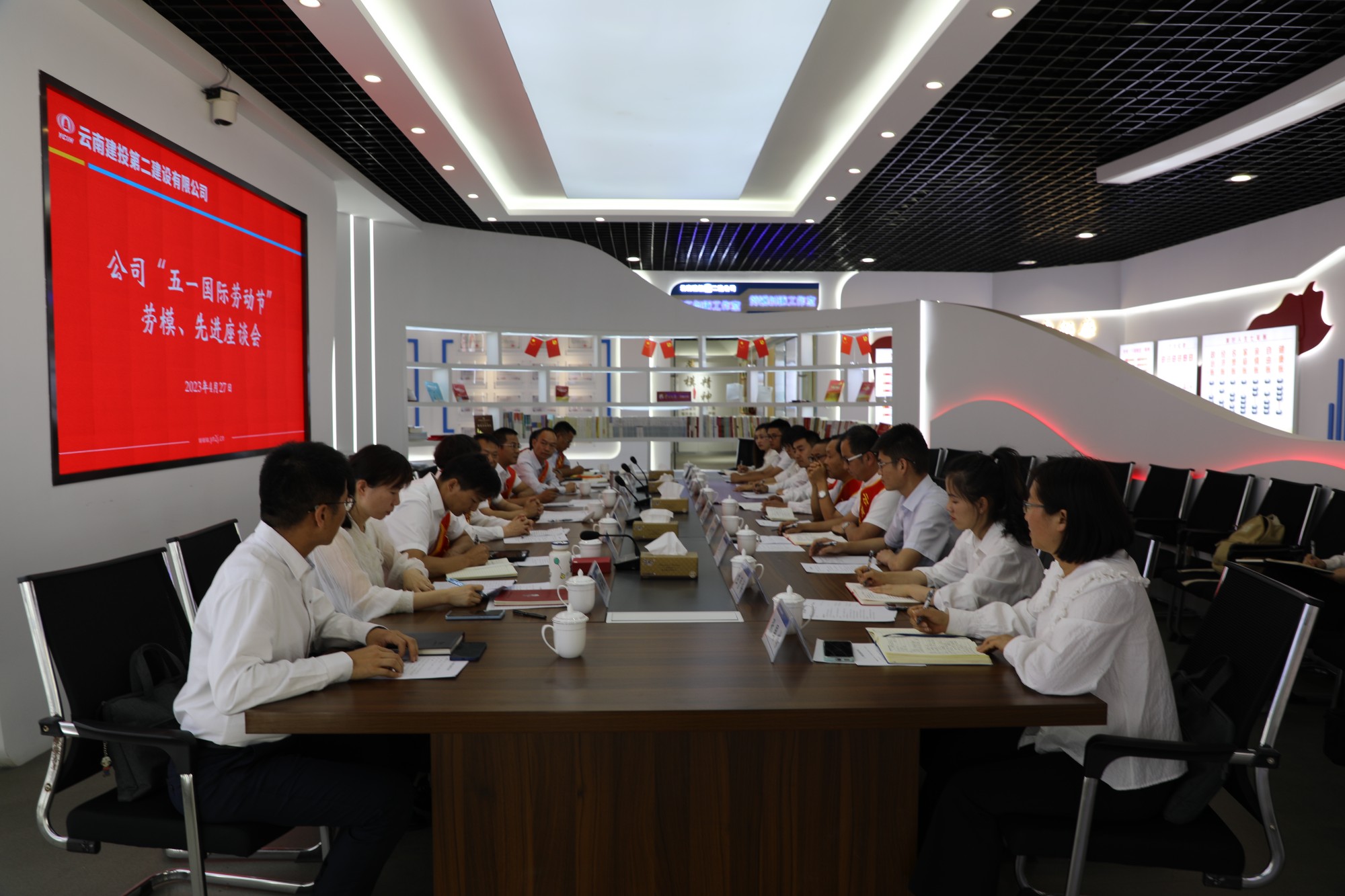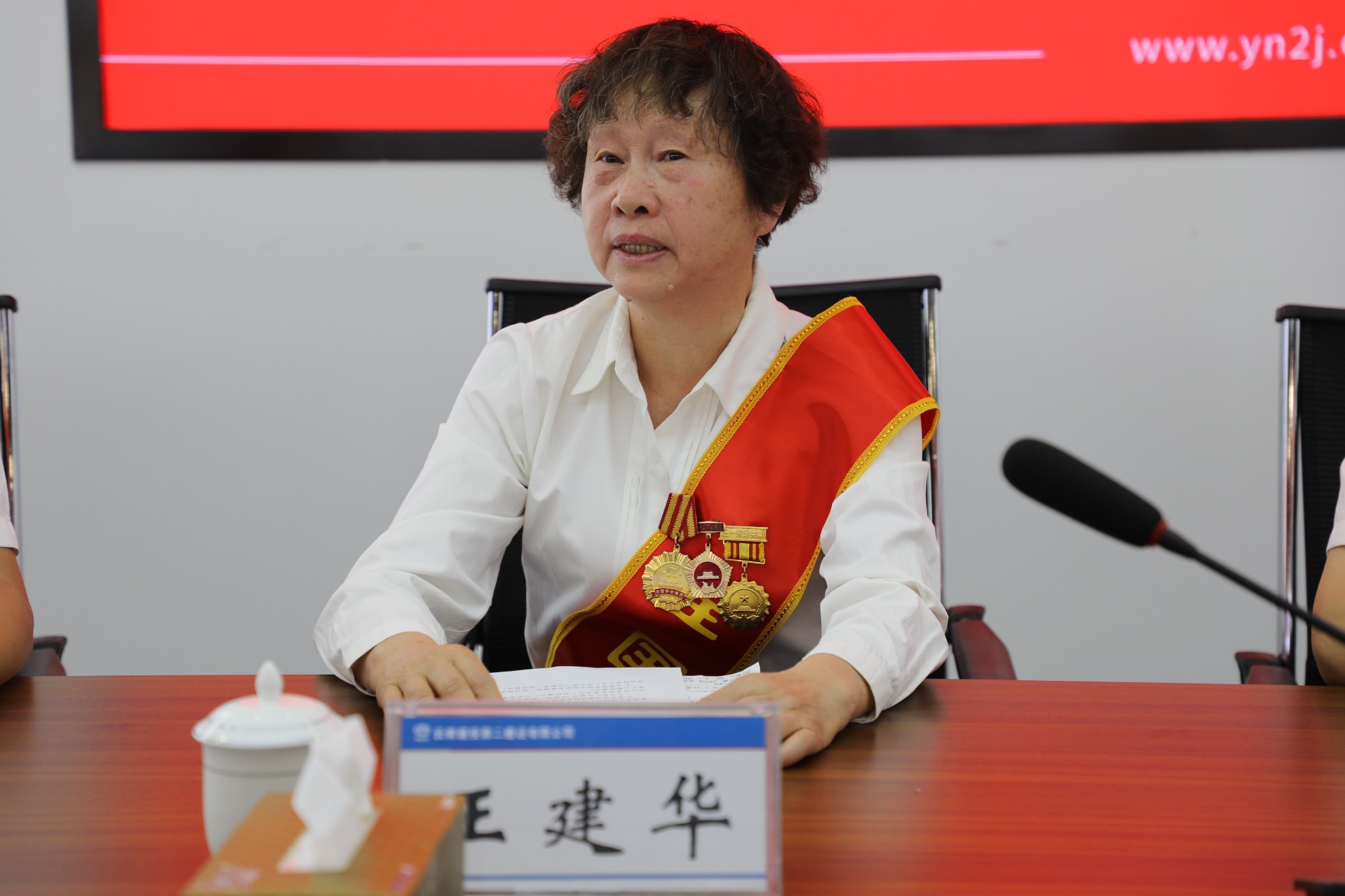 座谈会上,劳模们围绕公司70年发展历程和自身工作实际谈体会,吐心声,细致描绘自己眼中的二建。在大红色的背景装饰下,现场充斥着喜悦与温情的气息。