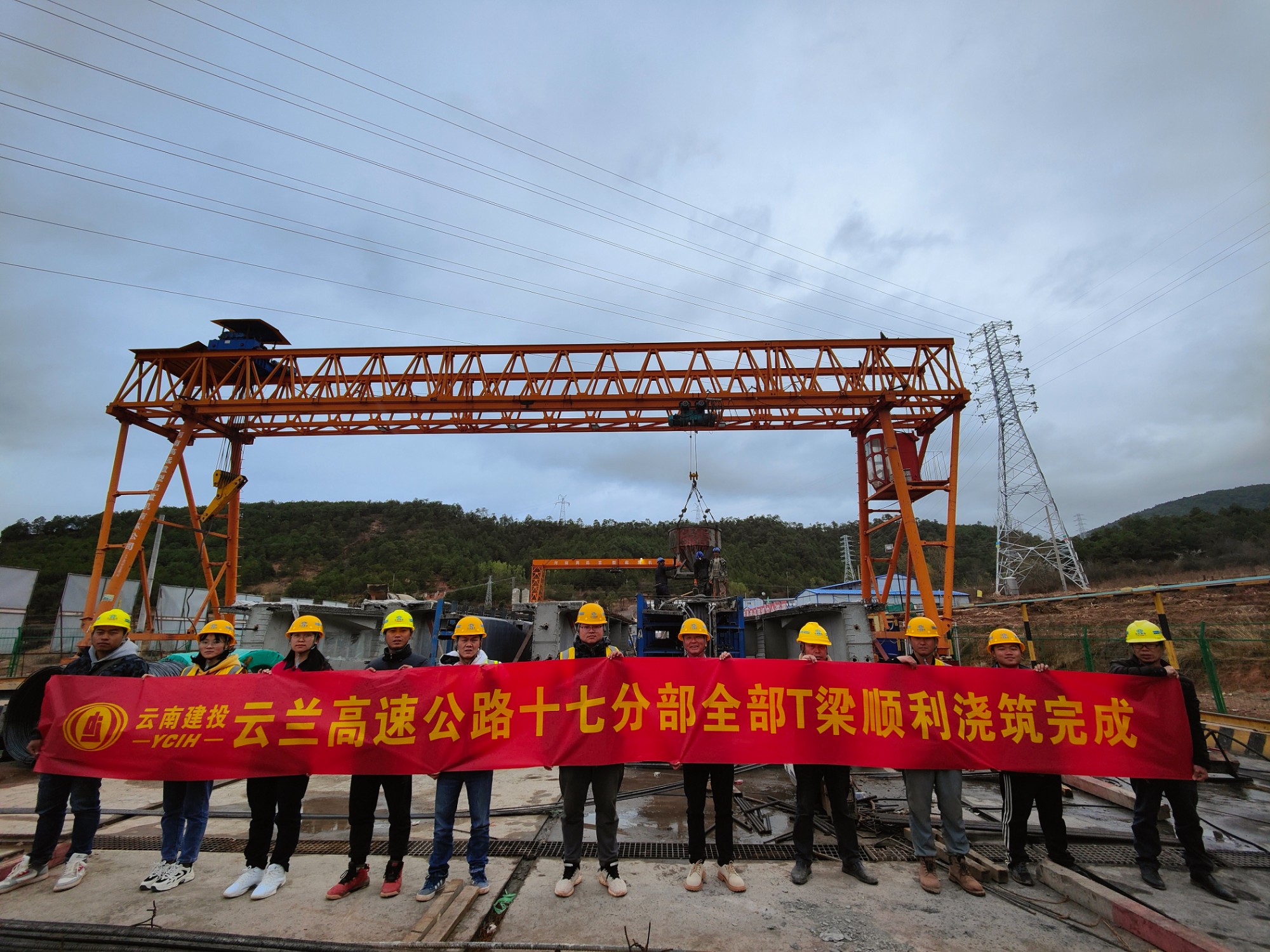 3月21日,伴随着最后一斗混凝土顺利入模,由路桥分公司承建的云兰高速十七分部426片T梁全部预制完成。