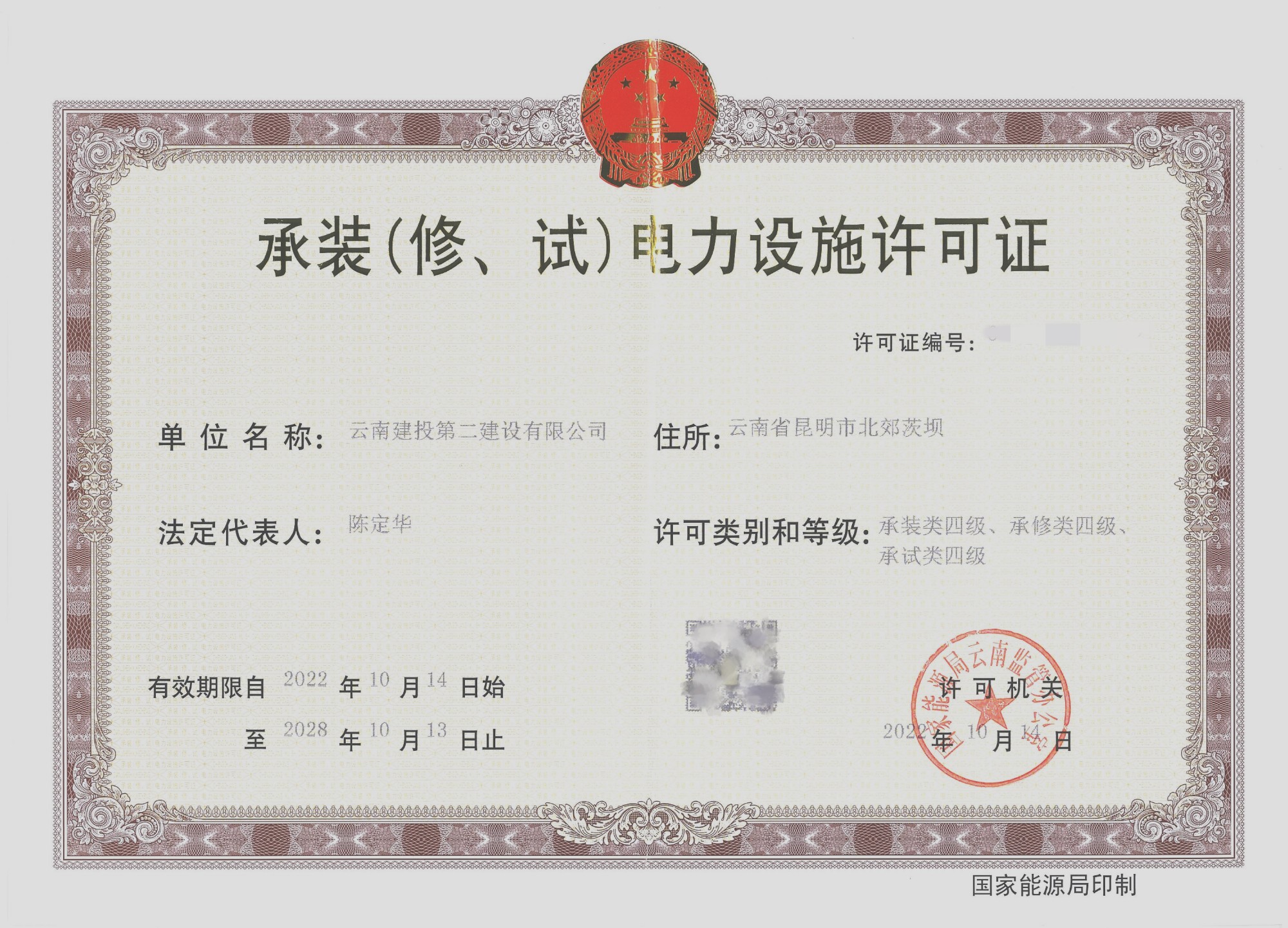 近日,公司成功取得国家能源局云南监管办公室颁发的承装类、承修类、承试类四级电力设施许可证,电力专业水准获得行业权威认可。