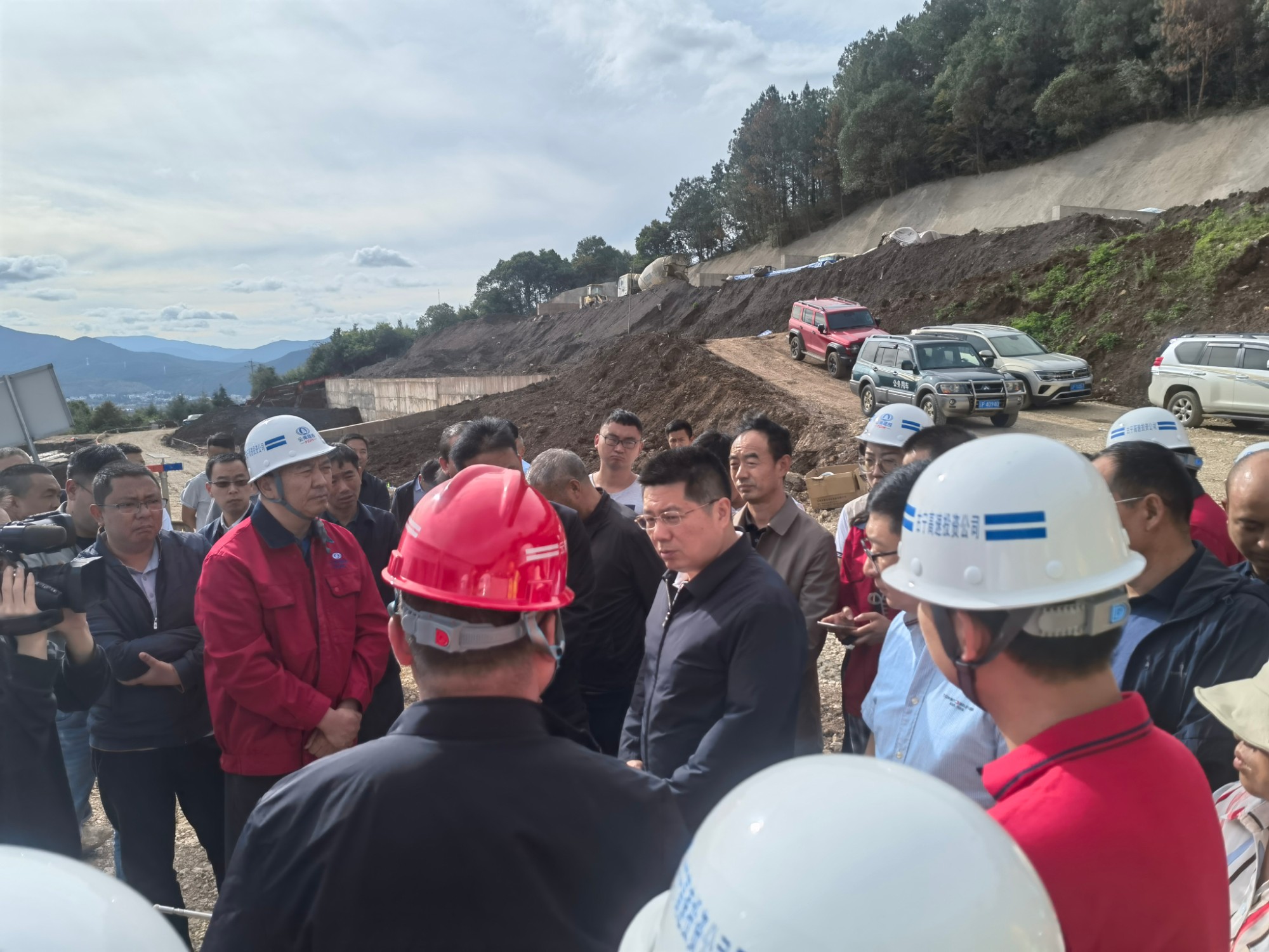 6月21日,丽江市市长苏永忠携丽江市交通局、林业和草原局、生态环境局、国土资源局、玉龙县及古城区相关领导到第七直管部承建的丽江市古城至宁蒗高速公路项目TJ-3分部调研检查,丽江古宁高速项目公司、指挥部及各参建单位相关负责人陪同调研。