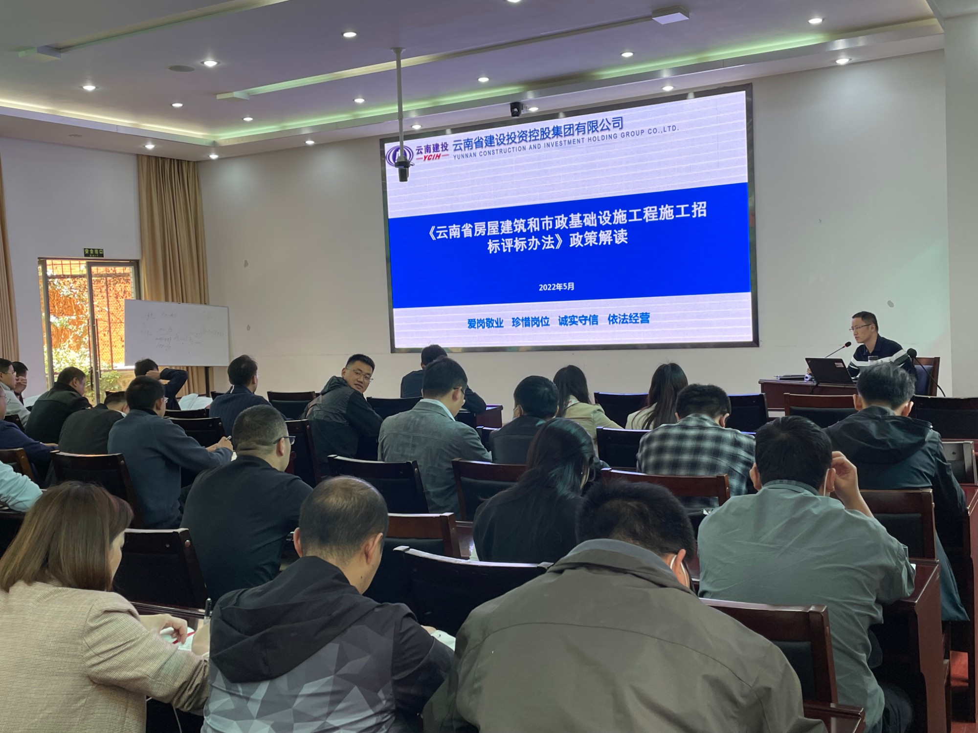 为加强各单位对《云南省房屋建筑和市政基础设施工程施工招标评标办法》的理解认识,提升投标预算、技术方案编制能力,5月6日下午,公司在一楼会议室组织开展投标业务培训,各基层单位经理、党支部书记及相关业务人员参加培训。