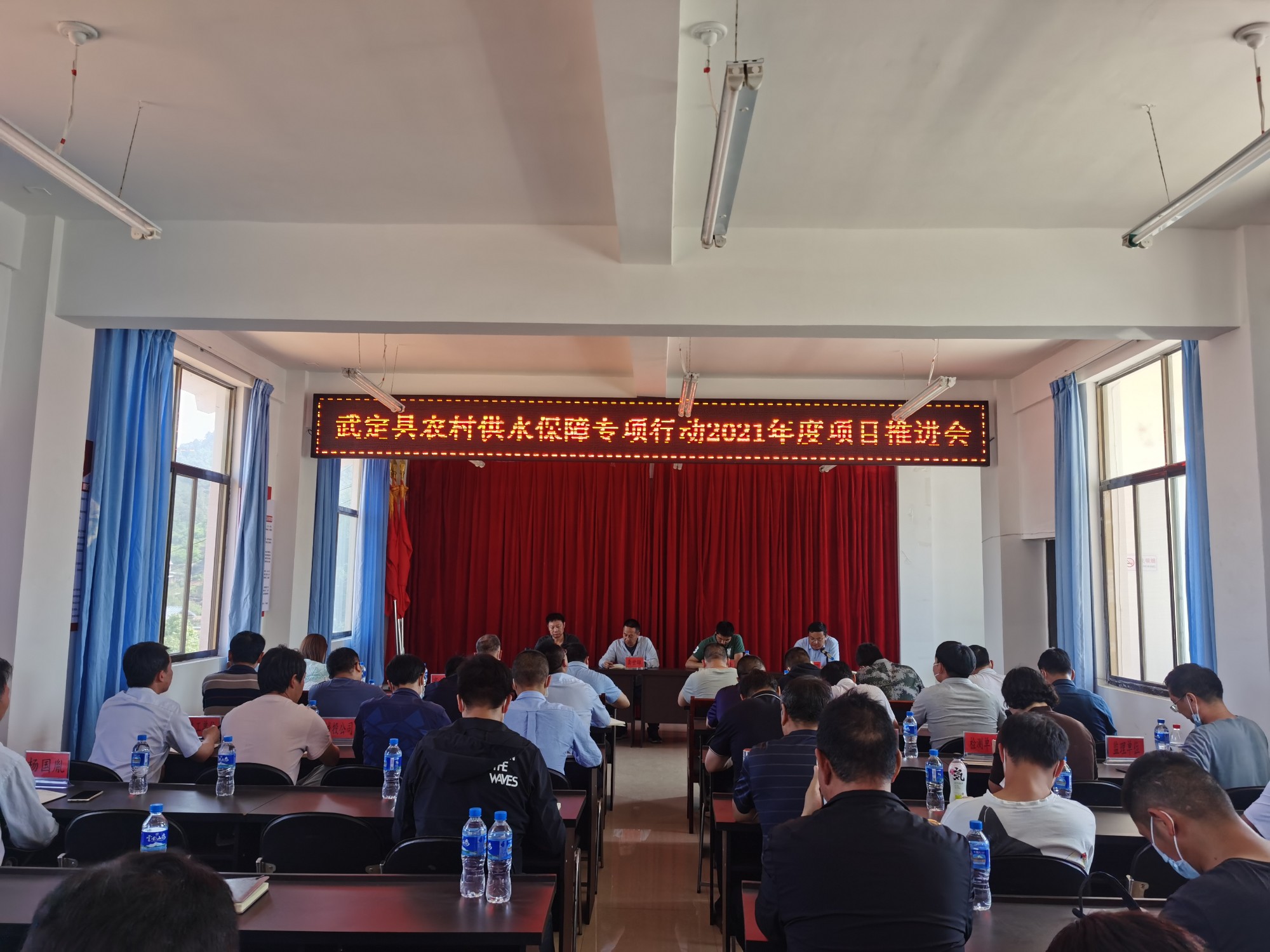 开工仪式圆满完成后,龚世雄组织本项目各参与单位、部门和人员召开本项目推进会,旨在顺利推进本项目的建设,县政府办副主任妥自圆主持会议;县水务局局长余贵银就如何实施好农村供水保障项目作安排,省水投楚雄片区负责人周锋对本项目的融资情况进行汇报、讲解并表态发言,龚世雄围绕项目建设目的、建设内容、如何建设对会议作总结发言和要求,进一步明确和要求县、镇(乡)、村各级部门和人员以及各参建单位的相关事宜。参会的各县级部门和狮山镇、高桥镇、白路镇、东坡乡领导作表态发言。