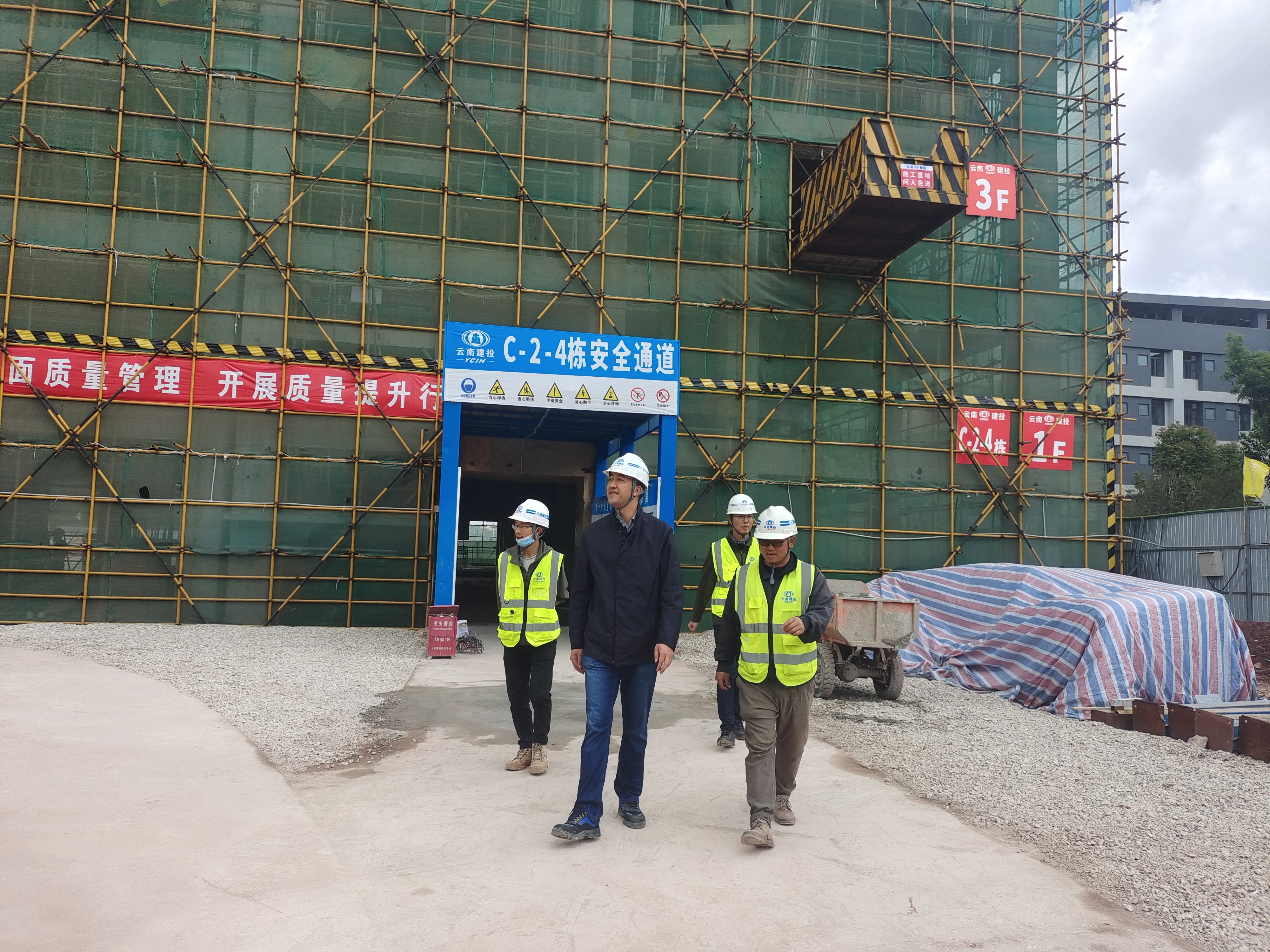 4月21日上午,公司副总经理臧庆泽携安全监督管理部相关负责人一行到第十一直管部承建的云南财经大学安宁校区新四栋项目检查、指导工作,第十一直管部党支部负责人和项目相关负责人陪同。