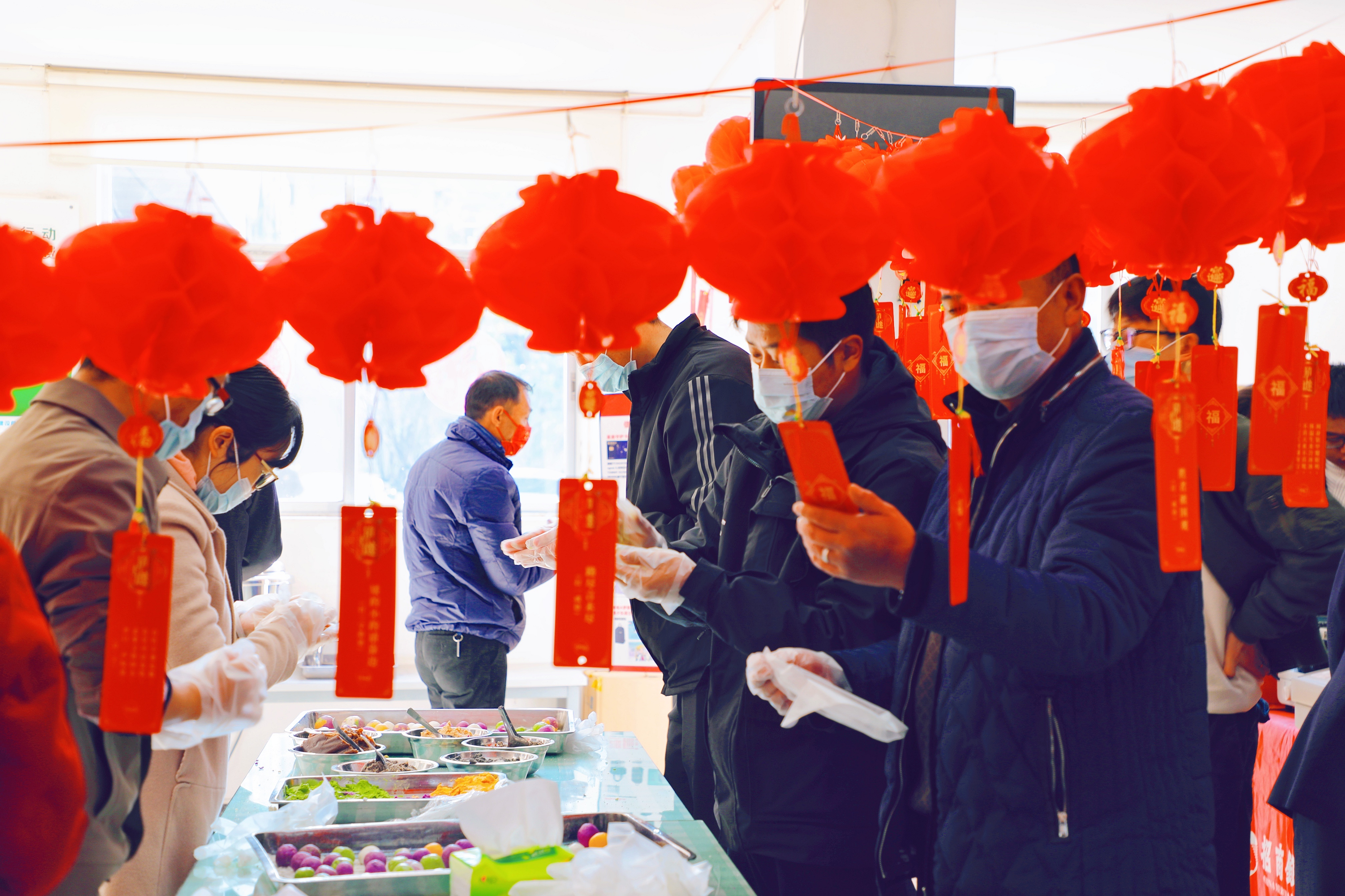 提到元宵节,自然离不开赏花灯、吃汤圆、猜灯谜、放烟花等一系列传统民俗活动。活动上,机关工会精心准备了上百条灯谜,涉及集团、公司企业文化等内容,涵盖了成语典故、地名、动物、专业名词等知识,并为猜对灯谜的职工准备了精美的“幸运盲盒”,奖品丰富;同时,机关食堂准备了包汤圆的材料,大家齐动手,共出力,为自己的午饭加餐。活动生动有趣,既具娱乐性,又具知识性,吸引了众多职工参与。