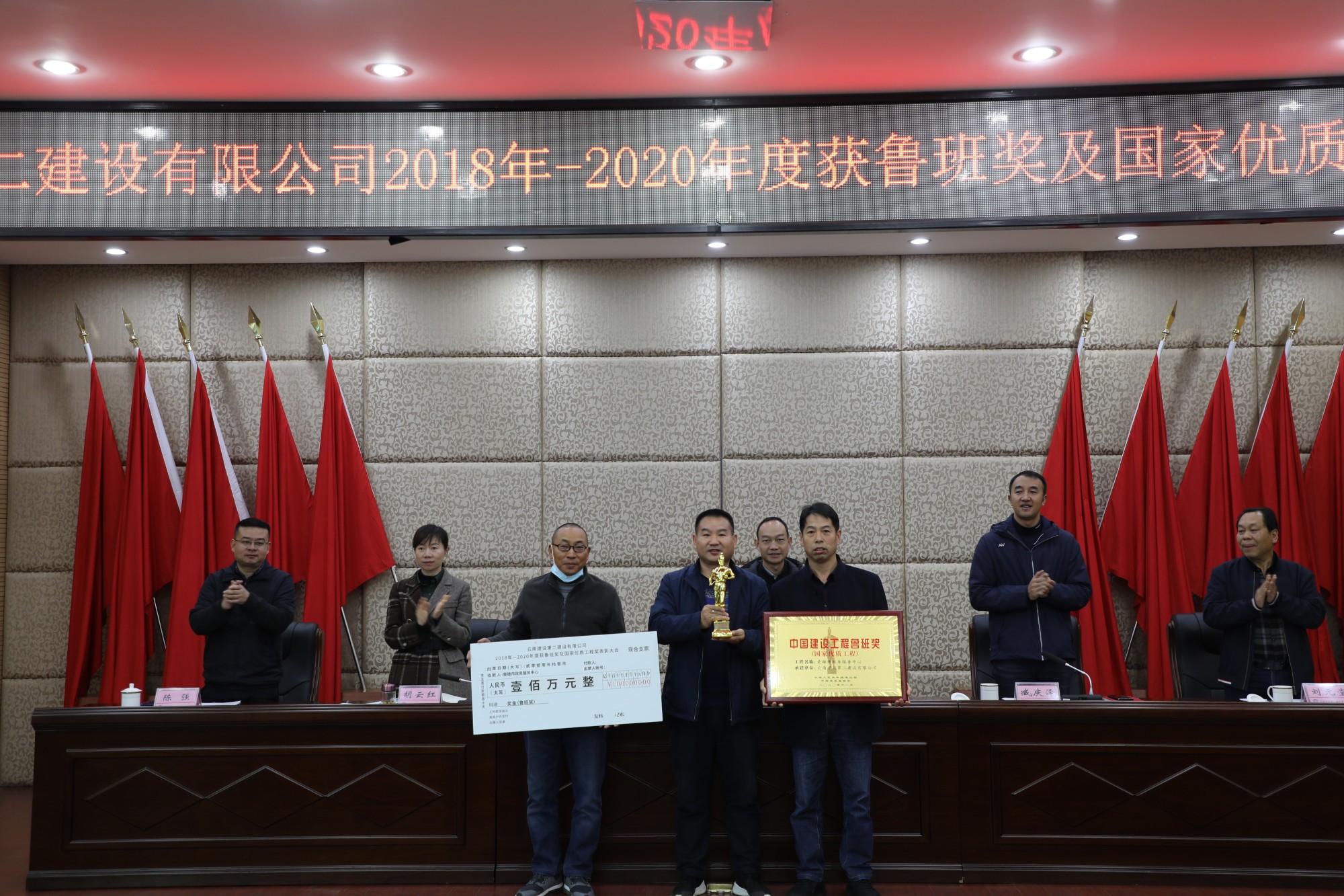 董学友代表公司领导班子对获奖的单位表示祝贺和感谢,并指出,“十三五”期间,公司在生产、经营管理工作保持良好发展势头的同时,质量创优工作稳步推进、精心组织、全面策划,不仅圆满完成了2018-2020年度制定的质量创优指标,质量创优奖项也再创历史新高,取得了可喜的成绩。公司2018-2020年共获得鲁班奖3项(云南海埂会议中心商务酒店、滇西应用技术大学总部建设项目一号云教育大楼、楚雄市政务服务中心)、国家优质工程奖3项(宜良文体商贸城、昆明滇池国际会展中心展馆及配套商业项目、昆明院科研实验大楼建设项目)。根据公司《技术质量管理手册》中《工程项目创优奖励制度》的规定及公司《关于2018-2020年度鲁班奖、国家优质工程奖的决定》。公司对获奖项目,和主要完成单位(第一直管部、第二直管部、第九直管部、第十三直管部、第十五直管部、第一安装分公司和第二安装分公司)进行表彰,对各获奖基层单位依照文件规定颁发相应的奖励。希望获奖单位戒骄戒躁,继续发扬工匠精神,为公司创建更多精品工程。