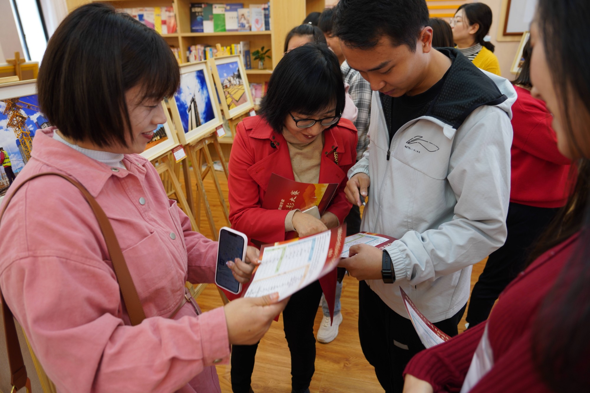 大赛开幕后,参会人员到职工书屋观展投票。
