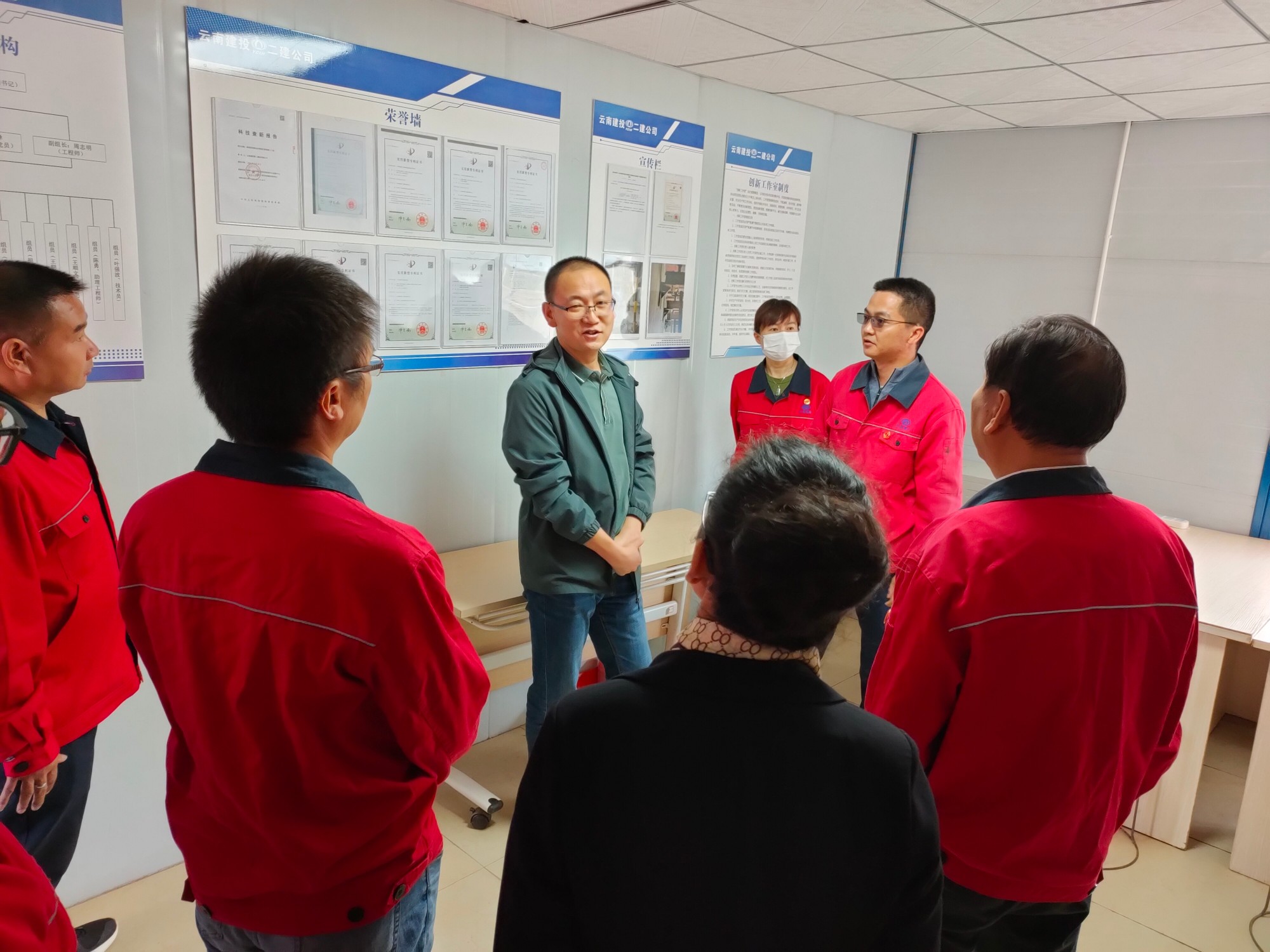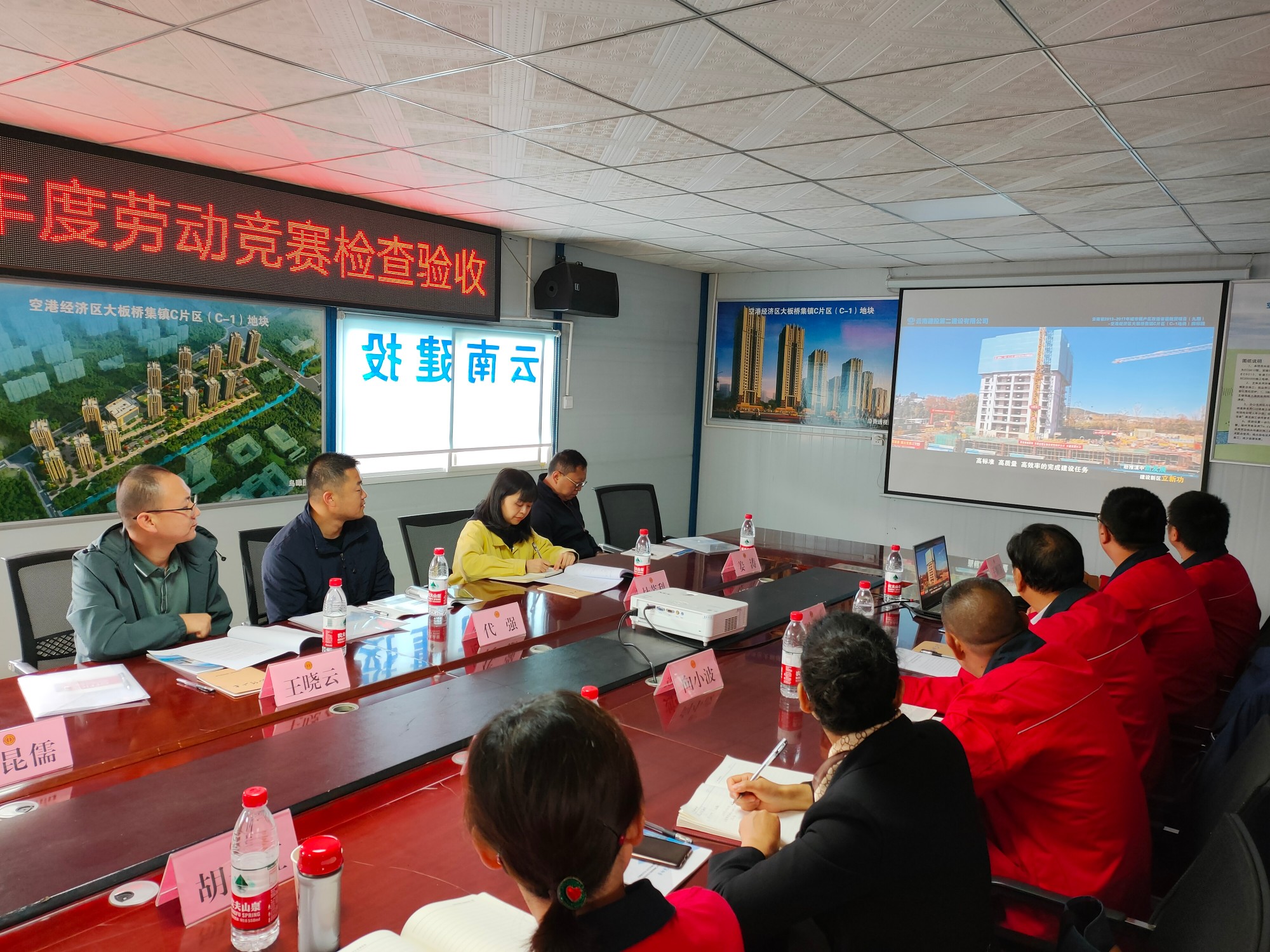 10月12日上午,昆明市总工会劳动和经济工作部副部长王晓云、二级主任科员代强,云南滇中新区总工会经费审查办公室负责人杜芋利,昆明空港投资集团工会副主席姜涛一行来到公司第十五直管部空港C片区(C-1地块)施工总承包四标段项目,对该项目开展劳动竞赛的成果,进行实地检查验收。集团工会副主席、女工主任赵艳波,公司党委委员、工会主席胡云红,副总经理向小波,总经理助理、第十五直管部经理李勇等陪同检查。