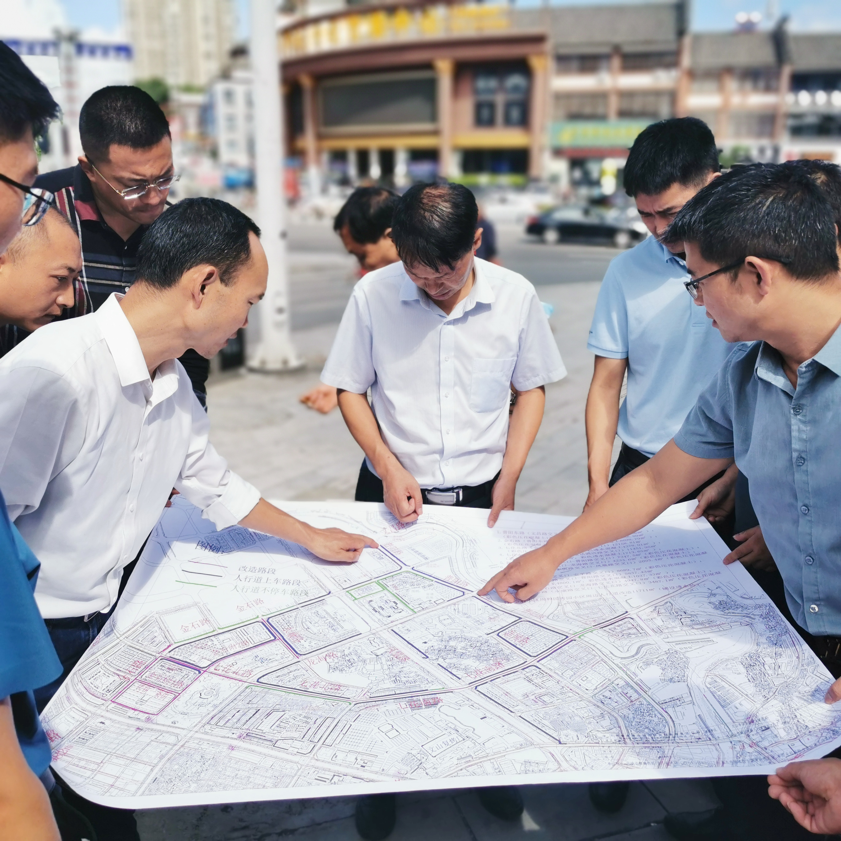 8月28日下午,公司党委副书记、董事长陈定华,党委副书记、副董事长、总经理董学友,年轻副总经理、项目总承包部党支部书记、经理龙为华,工程技术部、安全监督管理部、经济管理部、工会办公室、生产管理部等相关职能部门负责人一行调研指导文山市城区道路人行横道铺装工程项目。
