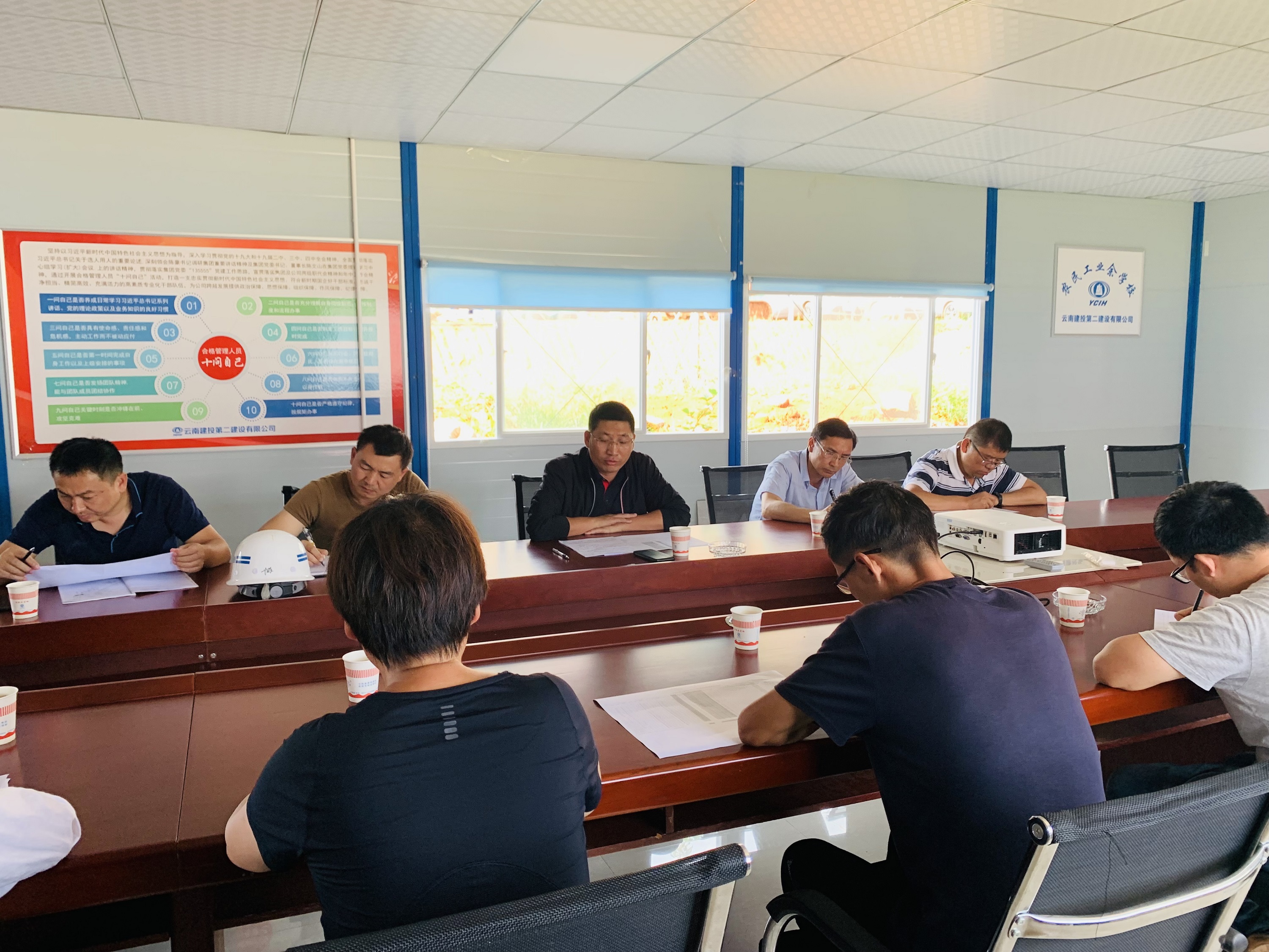 8月21日上午,公司总工程师付隽苍调研第一直管部晋宁项目,开展“十问自己”活动和“我的职责是什么”主题讨论。项目部相关负责人参加会议,会议由党支部负责人主持。
