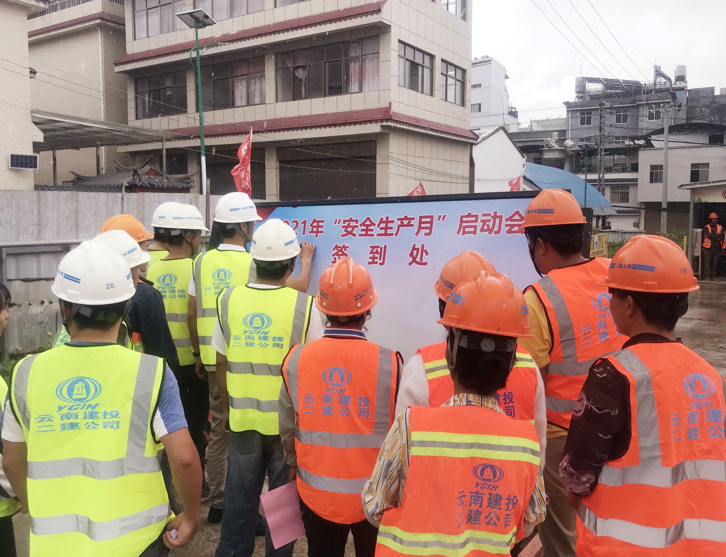 启动仪式上,各项目安全负责人就公司2021年“安全生产月”活动方案及近期相关文件进行了宣贯学习。各项目结合自身特点,开展了“安康杯”知识竞赛、防护用品的正确使用演示及安全管理经验交流等系列活动。安全员带领大家进行了“安全生产月”誓词宣誓,并组织全体职工农民工在“安全生产月”横幅上进行签字。