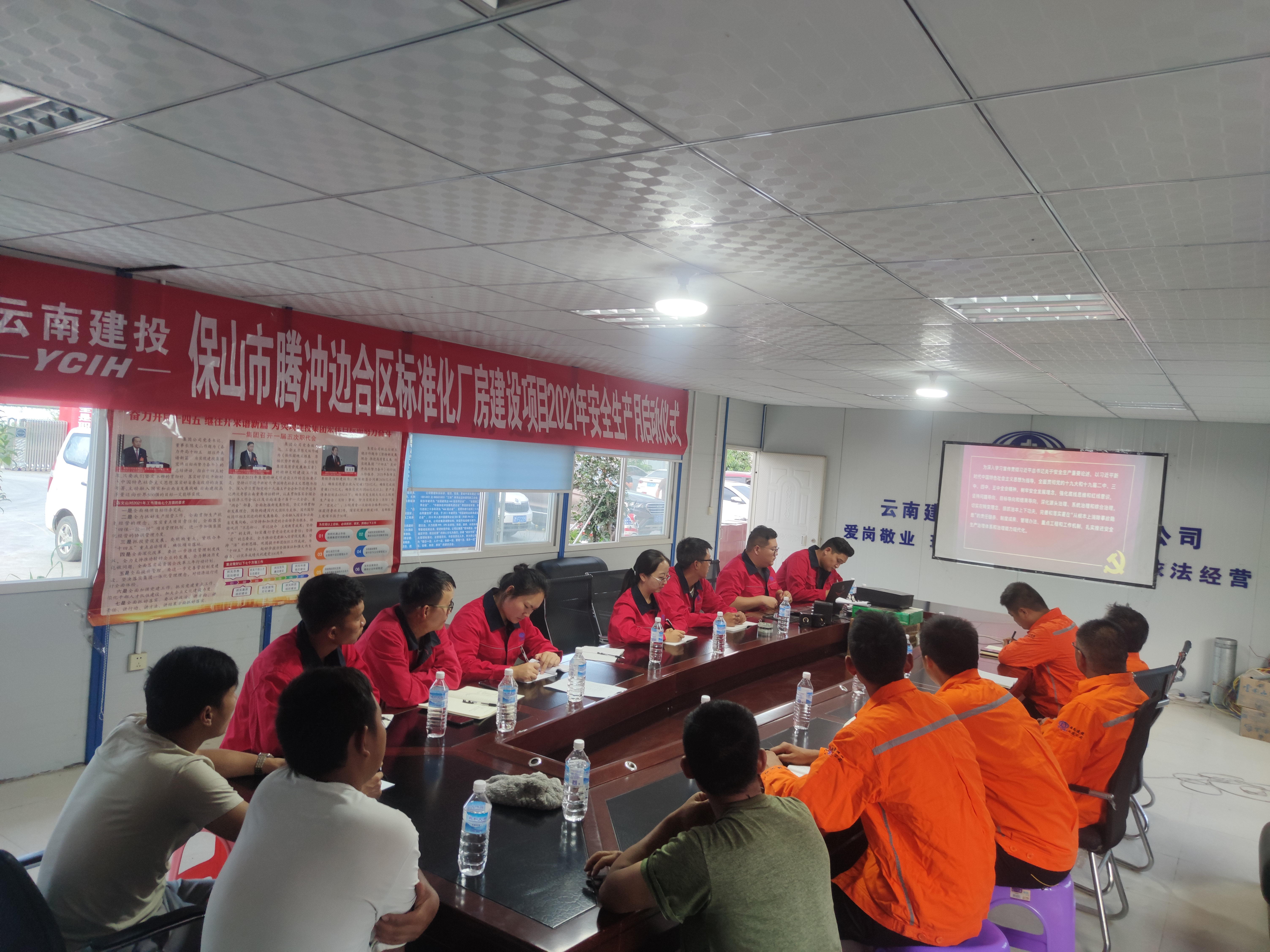 腾冲项目项目经理带领全员学习了公司2021年“安全生产月”活动方案,并强调到:项目要严格落实各项整改任务,深入排查安全风险隐患,扎实推进问题整改。