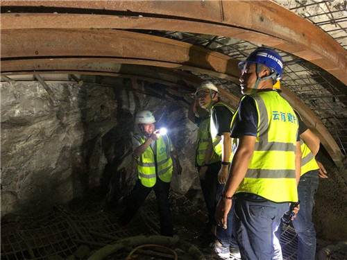 在元绿五分部小蚌嘎2号隧道,陈定华一行进行了深入的检查,现场施工员讲解了钻爆工艺,通过讲解了解到施工员对钻爆施工工艺掌握深度不足,同行的其他技术人员又对钻爆工艺进行了补充,让大家能更好地熟悉、掌握钻爆工艺。在对小蚌嘎特大桥检查过程中,陈定华一行认真听取了高墩液压爬模施工原理及工艺,并对钢筋安装操作平台进行细致的查看,提出了桥梁墩柱上人爬梯附着设置滞后,晃动较大;桥梁墩柱钢筋安装操作架临边防护局部不到位;墩柱之间人行通道设置随意;模板上口操作平台槽钢斜支撑焊接质量较差,同时未明确平台能承担荷载等问题,并要求及时整改。