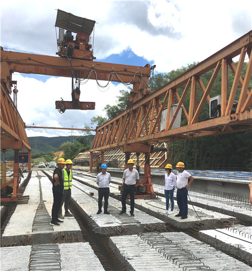万向遵深入施工一线,实地查看了项目进展动态,从安全、进度、质量、资金等各方面了解了T梁架设、桥面铺装等各种情况,听取了项目目前整体施工情况、推进存在的突出问题、下一步施工计划与组织安排的详细汇报。万向遵要求项目部要严格做好高空作业、高温天气及雨季施工的安全防护工作,确保安全生产;要抓紧完成施工节点目标,保证安全、高效、如期、有质量的完成目标,做到能通则通;要把高速公路建设与未来发展相结合,做到合理规划。