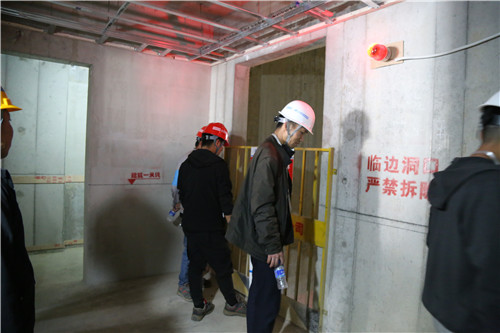参观施工现场过程中,不时有同事向讲解员了解项目现场情况,讲解员还着重向大家介绍了华润悦府项目实测实量的操作方法。