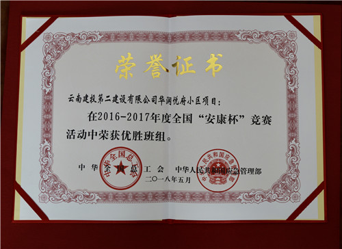 公司华润悦府小区项目喜获全国“安康杯”竞赛优胜班组荣誉称号