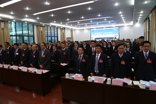 上午9时,会议开始。全场参会人员起立,高唱《国歌》。本次职代会共有141名代表,请假10人,实到131人。大会邀请离退休老领导7人、青年干部31人列席会议。