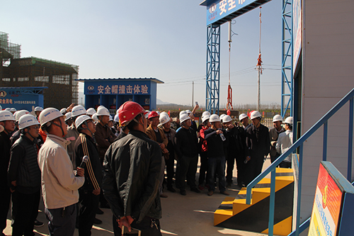 在项目部管理人员的带领下下,观摩团先后参观了样板展示区、质量安全体验区、现场施工工艺等。在质量安全体验区,观摩团先后参观了防穿刺体验、工友之约、移动平台、倾倒平台、触电体验、洞口坠落体验等各体验项目,项目部管理人员一一为大家作了讲解和演示。在样板展示区,观摩团先后参观了外架搭建、墙体砌砖、混凝土浇筑、墙体抹灰等各工序的质量、技术标准,大家不时的拿出手机拍照,仔细观察各施工环节的质量技术标准及细节,纷纷表示赞许。