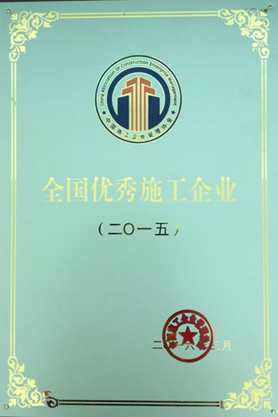 近日,中国施工企业管理协会公布了“2015年度全国优秀施工企业”名单,公司再次成功入选,连续多年获此殊荣。